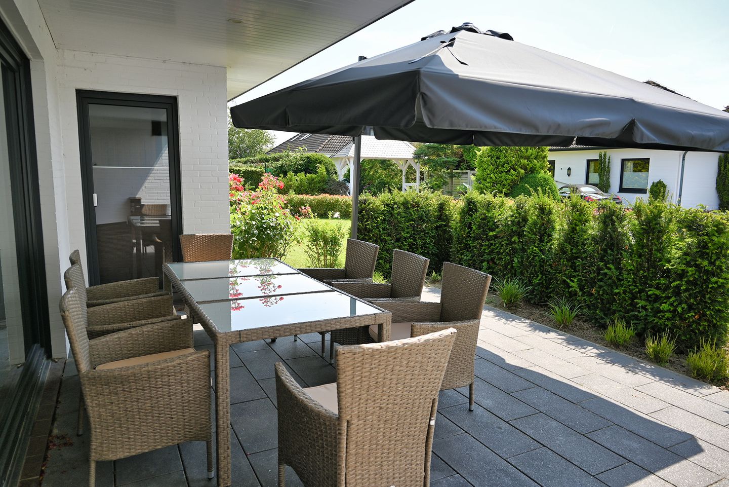 Sie sonnige Stunden auf der teilüberdachten Südterrasse. Ihnen stehen zwei