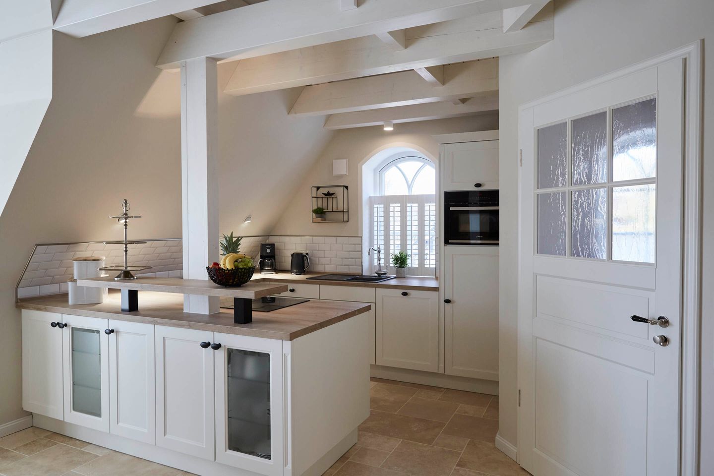 Das Feriendomizil verfügt über eine vollausgestattete Küche mit einer Geschirrspülmaschine. Das luxuriöse Bad ist mit einer bodentiefen Dusche, sowie Handtuchheizkörpern und einem Föhn versehen.