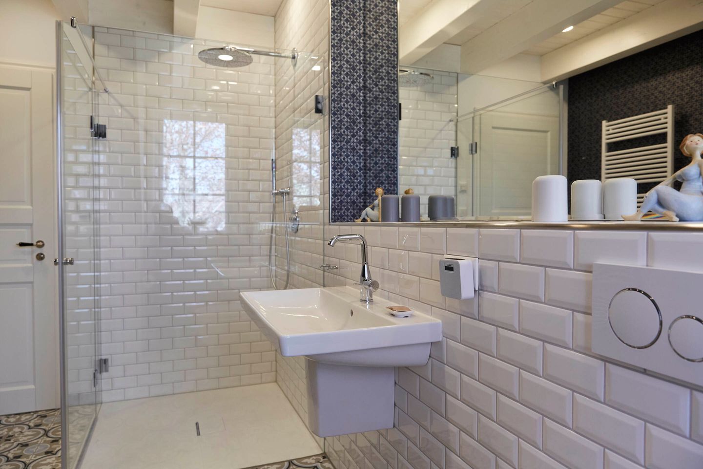 Diese Liebe zum Detail setzt sich im Innenbereich in höchstem Maße fort. Neben dem hochwertigen Mobiliar in Manufakturqualität, Travertin- und Echtholzböden, sowie den dazu passenden Fensterbänken, dürfen Sie sich auch in den Bädern auf modernste Ausstattung von namenhaften Herstellen, wie Villeroy & Boch und Hans-Grohe, freuen.