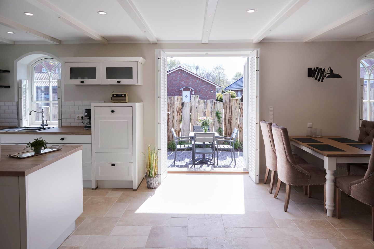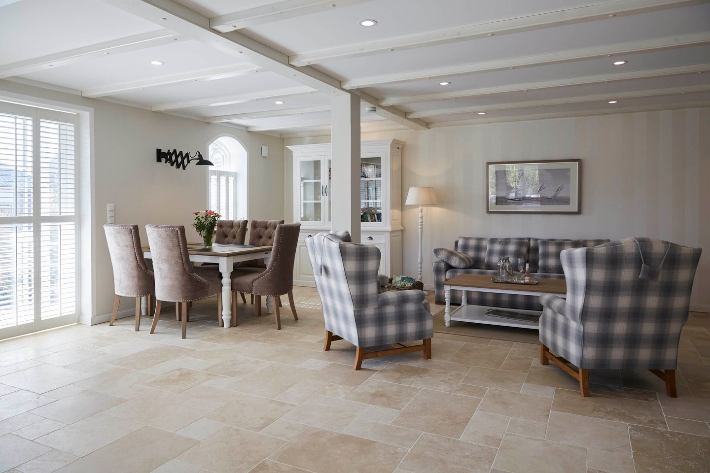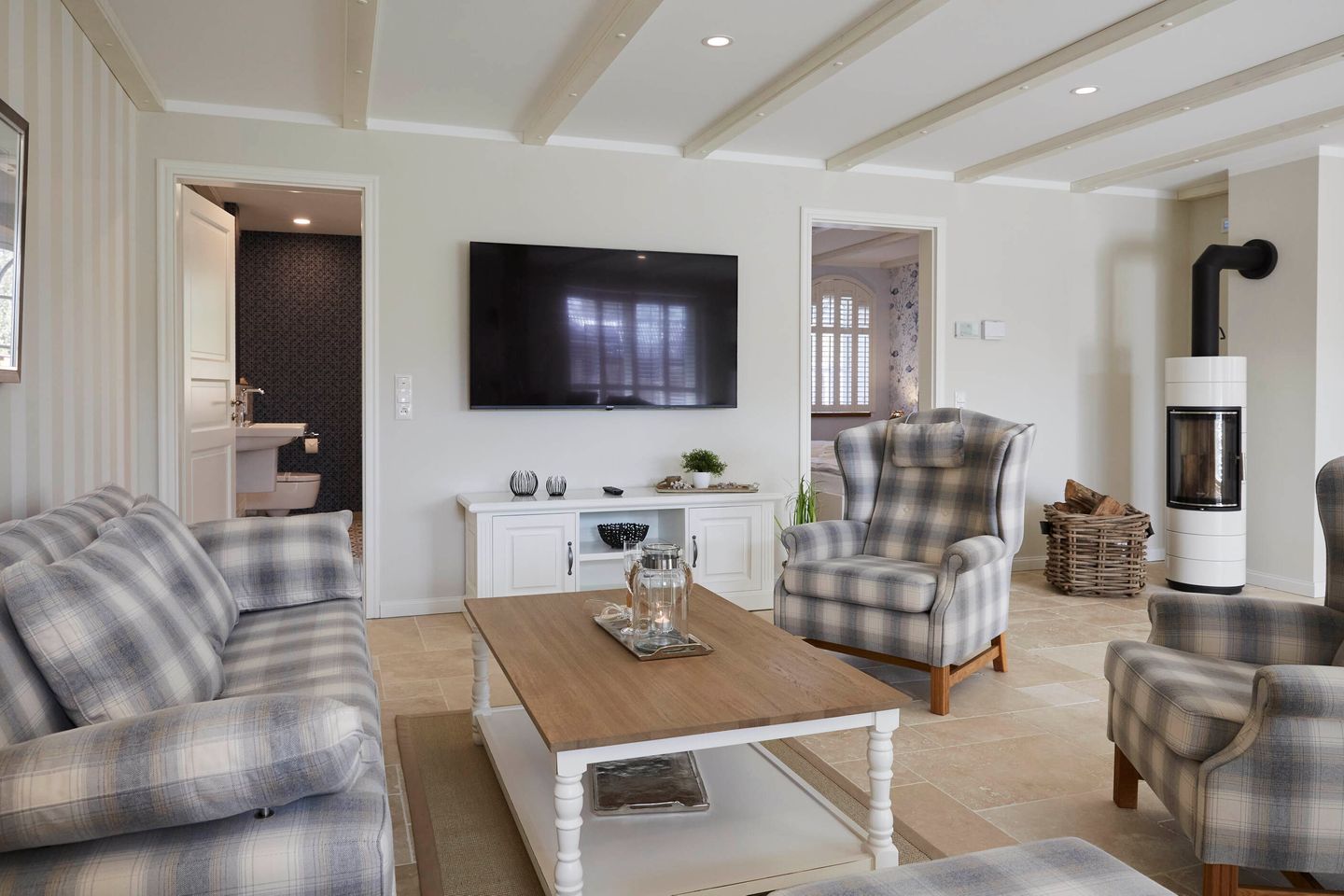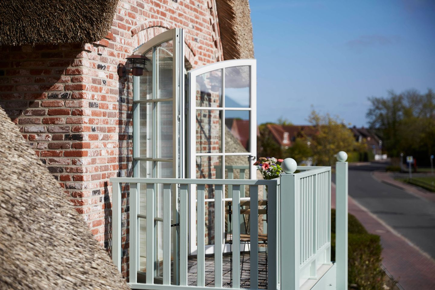Schon von außen erkennen Sie die typisch traditionelle Reetdachbauweise der Region, die durch Elemente, wie die ,,Klönschnacktür‘‘, den stilechten und handgefertigten Holzfenstern mit Sprossen, den Shuttern, der gemauerten Katzentreppe auf dem Dach und vielem mehr zu erkennen ist.