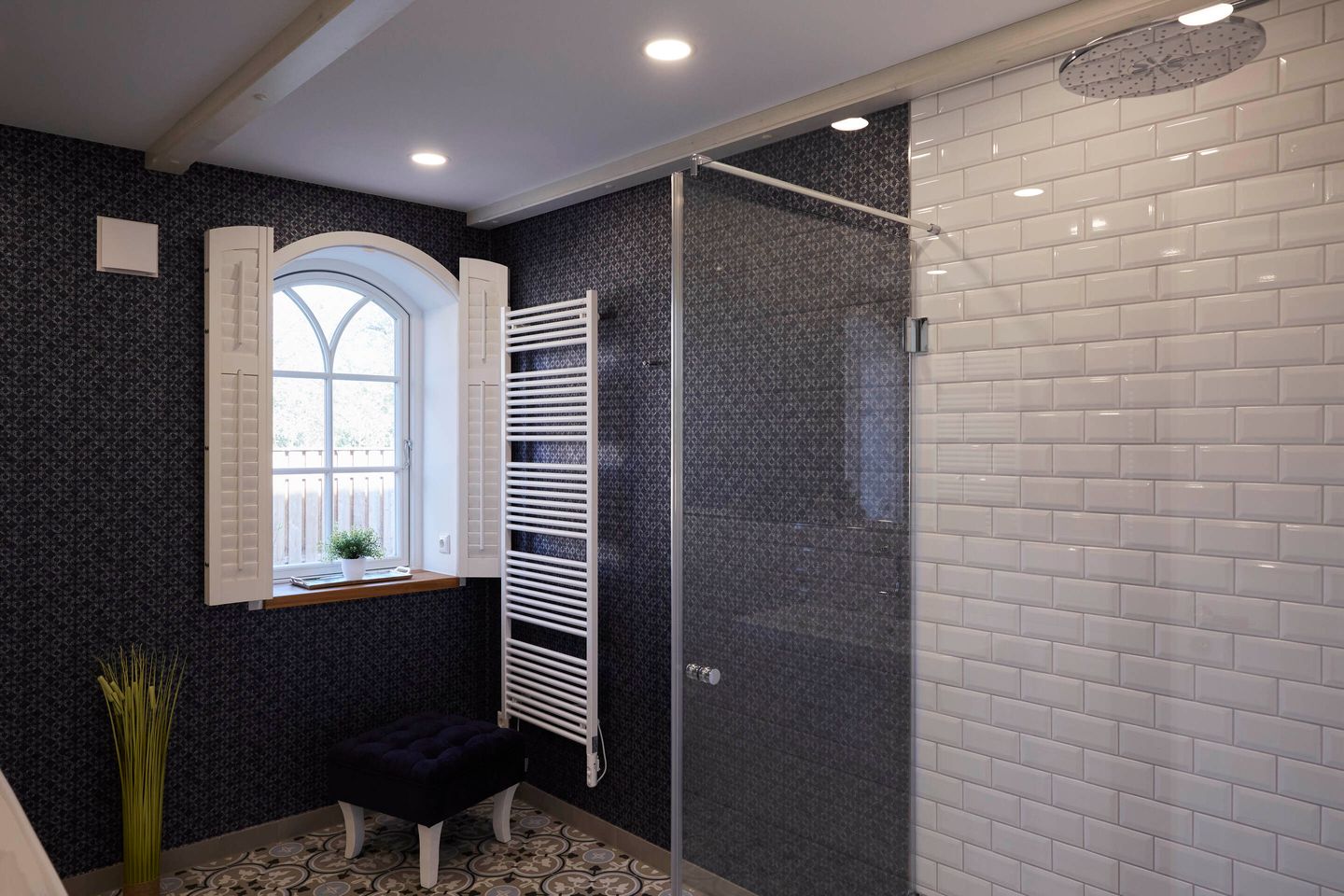 Diese Liebe zum Detail setzt sich im Innenbereich in höchstem Maße fort. Neben dem hochwertigen Mobiliar in Manufakturqualität, Travertin- und Echtholzböden, sowie den dazu passenden Fensterbänken, dürfen Sie sich auch in den Bädern auf modernste Ausstattung von namenhaften Herstellen, wie Villeroy & Boch und Hans-Grohe, freuen.