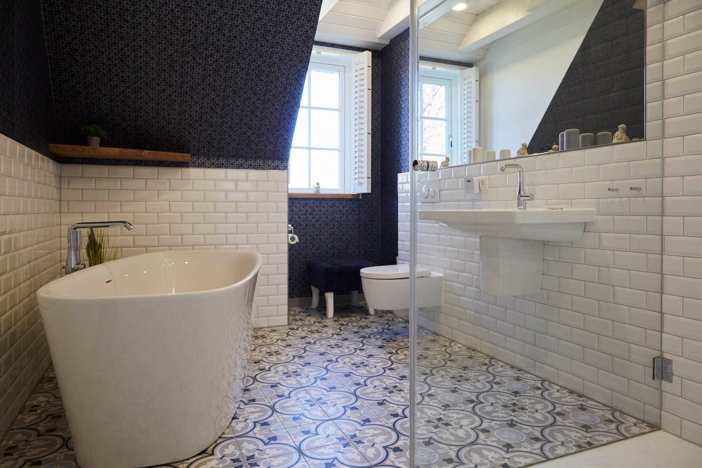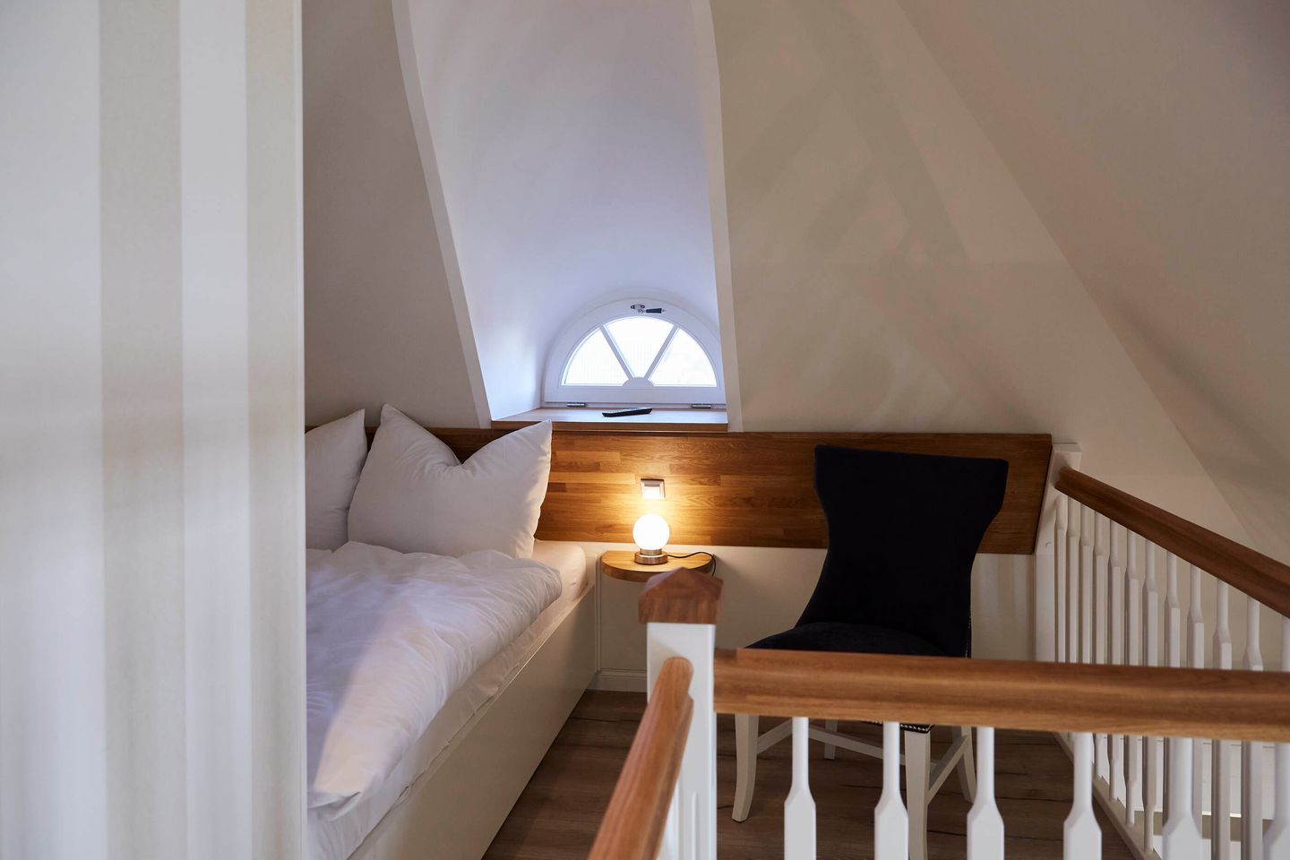 Ein Highlight ist die freistehende Badewanne im oberen Stockwerk.