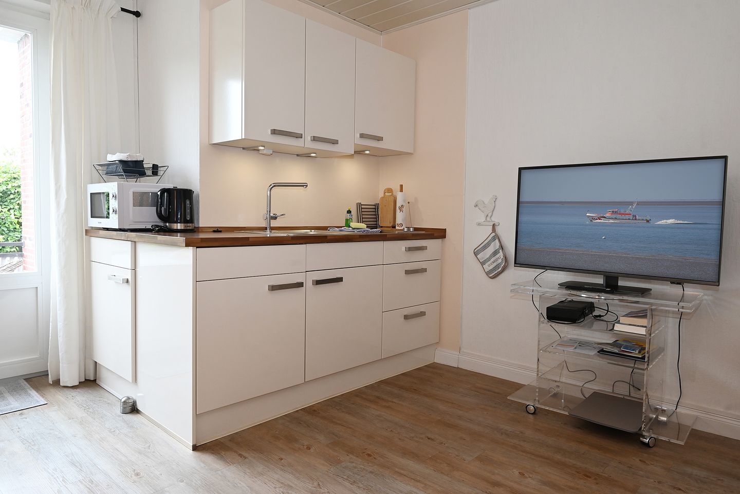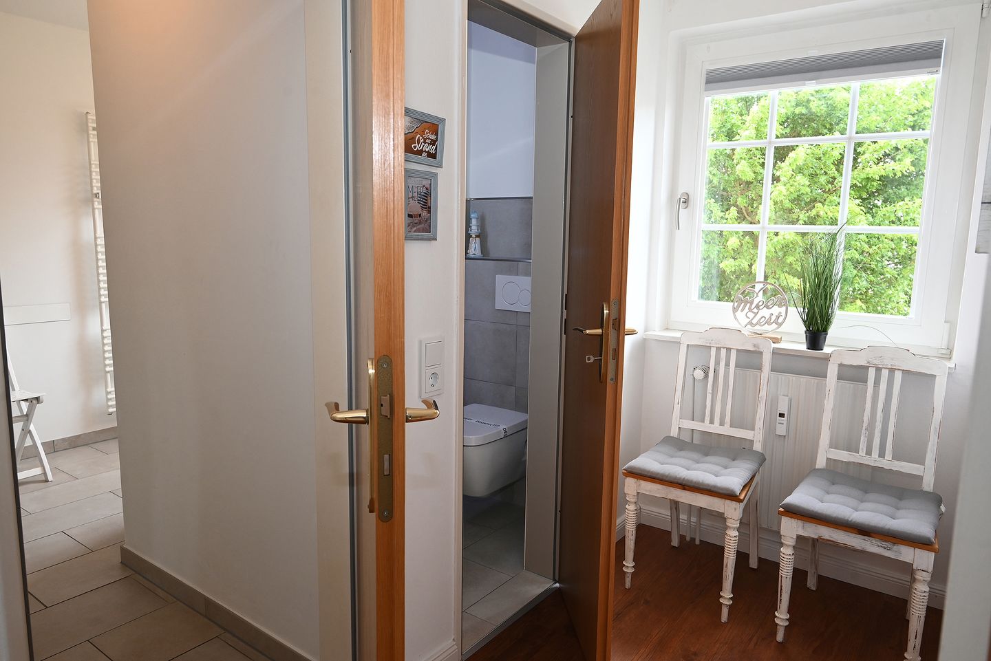 Sonnenbalkon mit Blick ins Grüne, zwei Zimmer und eine zentrale Lage: Die Wohnung Pauline im ruhigen Haus Stümpelhuk lädt zu einer fabelhaften Auszeit am Meer ein!
