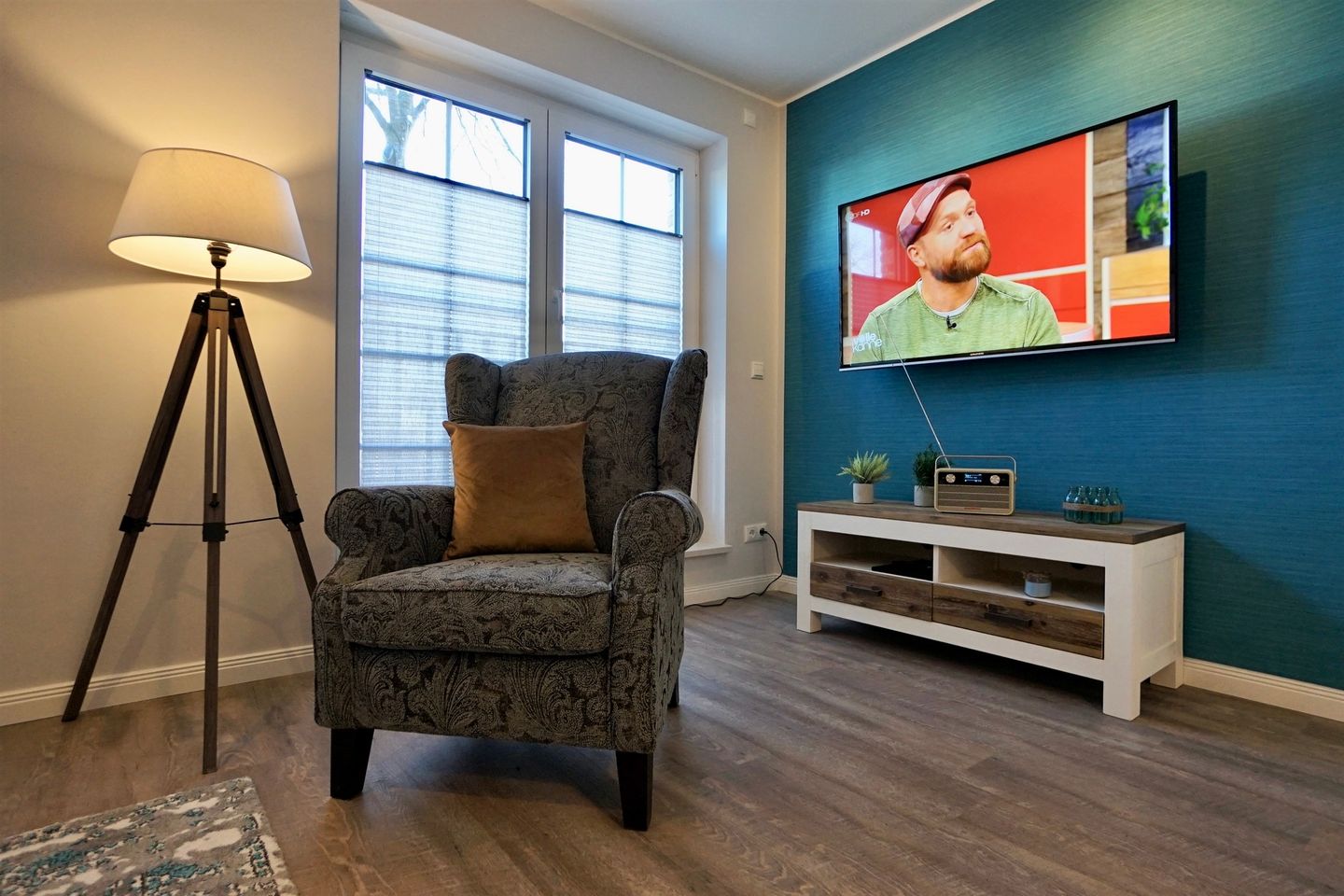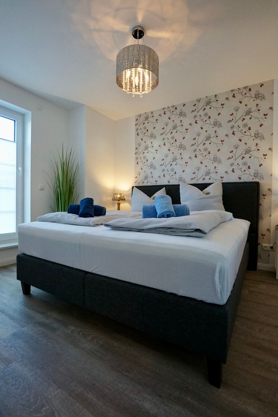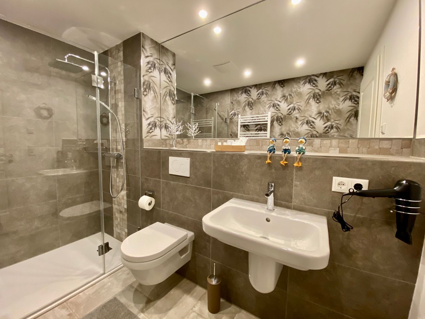 Hier erwarten Sie Fußbodenheizung, 3fach verglaste Fenster mit elektrischen Außenjalousien, eine moderne Lüftungsanlage, Power W-LAN, Bluetooth Radio, Fahrstuhl von der Tiefgarage aus, hochwertige Designer-Möbel, Schlafzimmer mit Boxspringbett, Smart-TV im Wohn- und Schlafzimmer, USB-Steckdosen, moderne vollausgestattete Küche mit Geschirrspüler, großes Badezimmer mit bodentiefer Dusche, Handtuchheizkörper und Föhn.