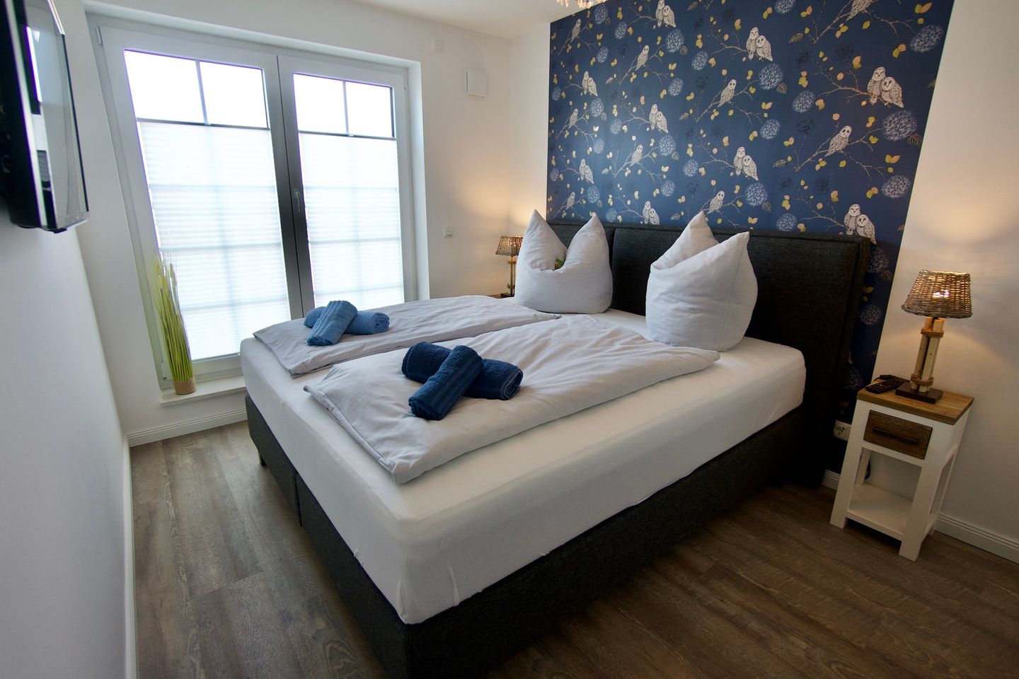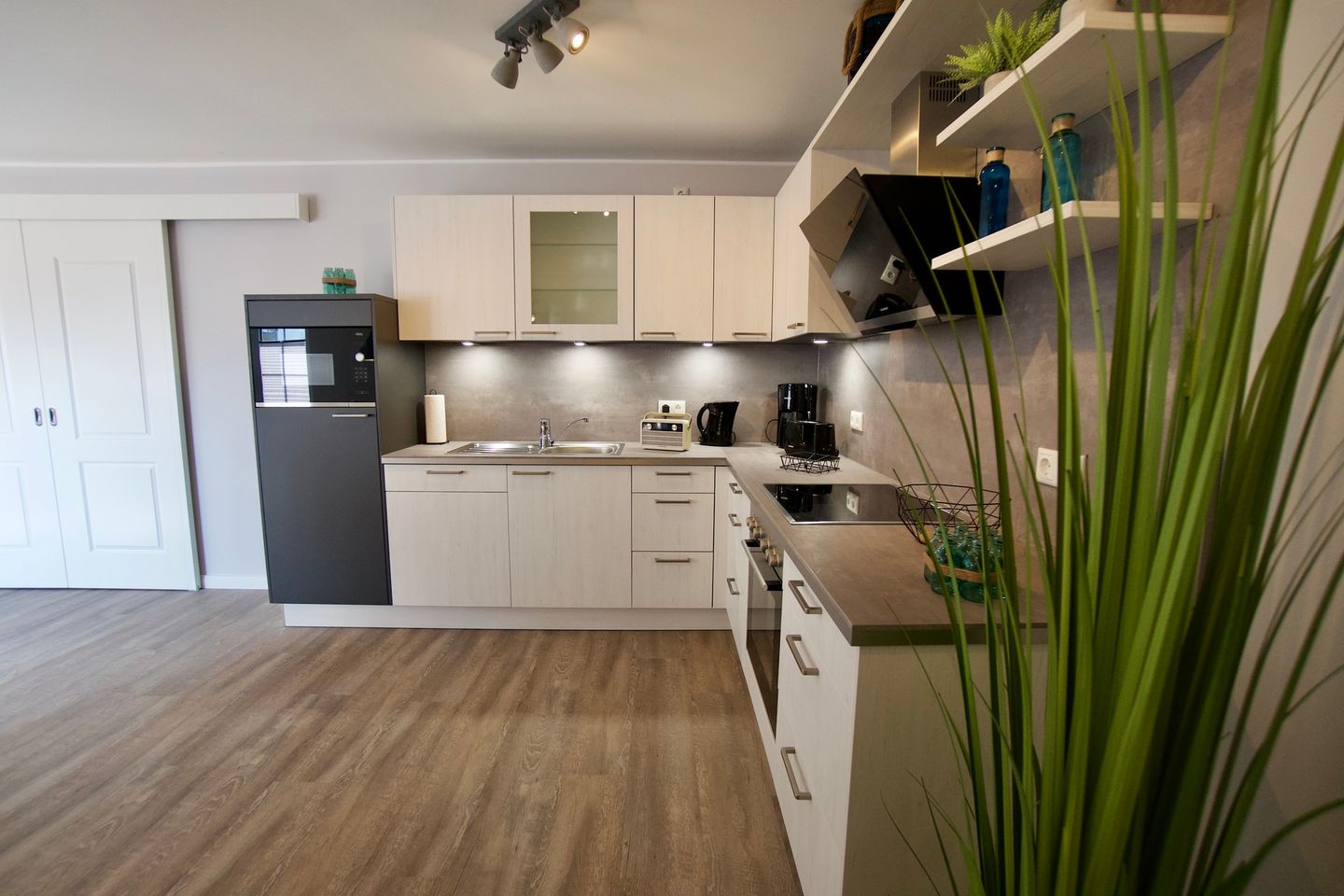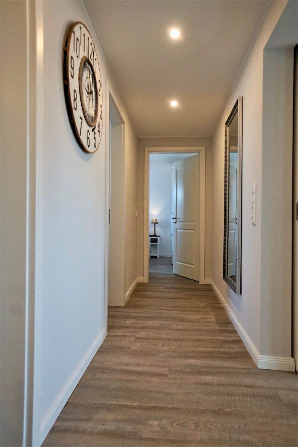 Hier erwarten Sie Fußbodenheizung, 3fach verglaste Fenster mit elektrischen Außenjalousien, modernste Lüftungsanlage, Power W-LAN, Bluetooth Radio, Fahrstuhl von der Tiefgarage aus, hochwertige Designer-Möbel, drei Schlafzimmer mit Boxspringbett (zwei Doppelbetten und zwei Einzelbetten), Smart-TV im Wohn- und in jedem Schlafzimmer, USB-Steckdosen, moderne vollausgestattete Küche mit Geschirrspüler, großes Badezimmer mit bodentiefer Dusche, Handtuchheizkörper und Föhn. Zusätzlich gibt es ein Gäste-WC.