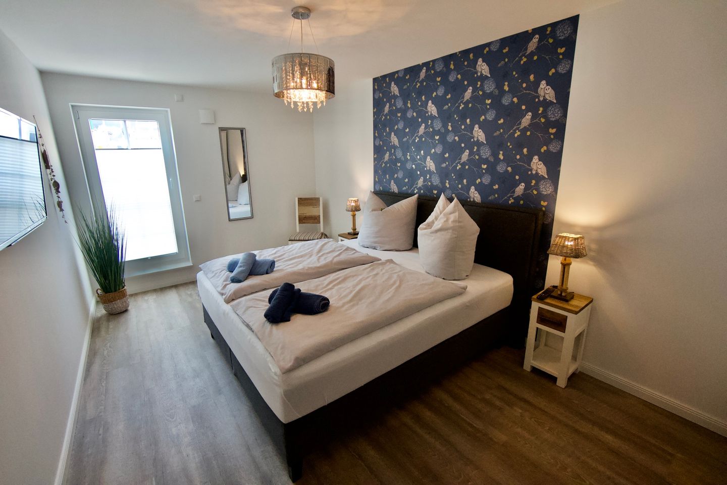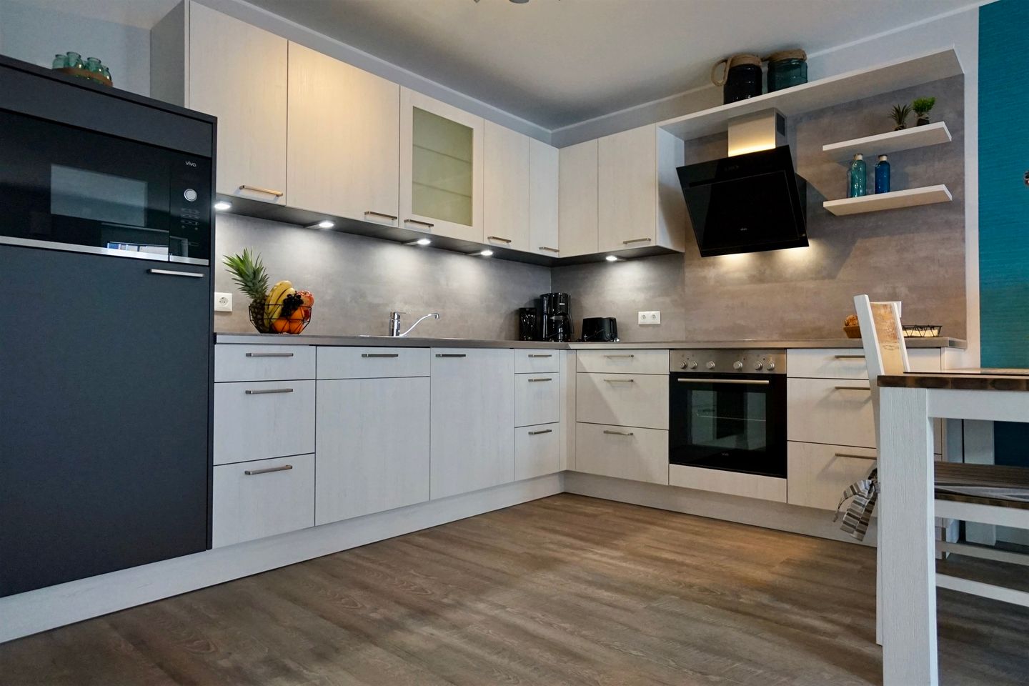 Hier erwarten Sie Fußbodenheizung, 3fach verglaste Fenster mit elektrischen Außenjalousien, modernste Lüftungsanlage, Power W-LAN, Bluetooth Radio, Fahrstuhl von der Tiefgarage aus, hochwertige Designer-Möbel, Schlafzimmer mit Boxspringbett, Smart-TV im Wohn- und Schlafzimmer, USB-Steckdosen, moderne vollausgestattete Küche mit Geschirrspüler, großes Badezimmer mit bodentiefer Dusche, Handtuchheizkörper und Föhn.