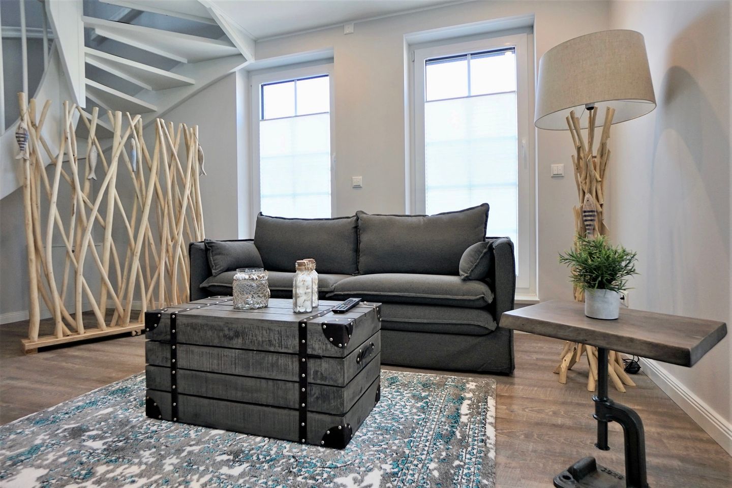Hier erwartet Sie eine großartige Maisonettewohnung mit Fußbodenheizung, 3fach verglasten Fenstern mit elektrischen Außenjalousien, modernster Lüftungsanlage, Power W-LAN, Bluetooth Radio, USB-Steckdosen, Fahrstuhl von der Tiefgarage aus. Die Wohnung teilt sich in zwei Etagen. In der zweiten Etage (Eingangsetage) befinden sich ein Schlafzimmer mit Boxspringbett, ein Bad en Suite, ein Gäste-WC und ein offener Wohn- Essbereich mit Küche, Geschirrspüler und Balkon. Vom Wohnbereich geht es über eine Treppe nach unten in die Relax Lounge mit gemütlichem Sofa und Smart-TV. Hier im 1. Obergeschoss befindet sich ebenfalls ein Bad sowie ein Schlafzimmer mit Boxspringbett.