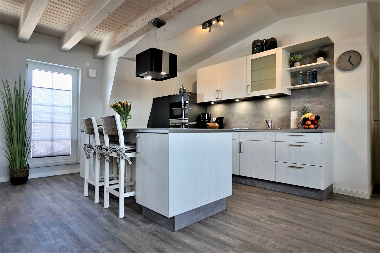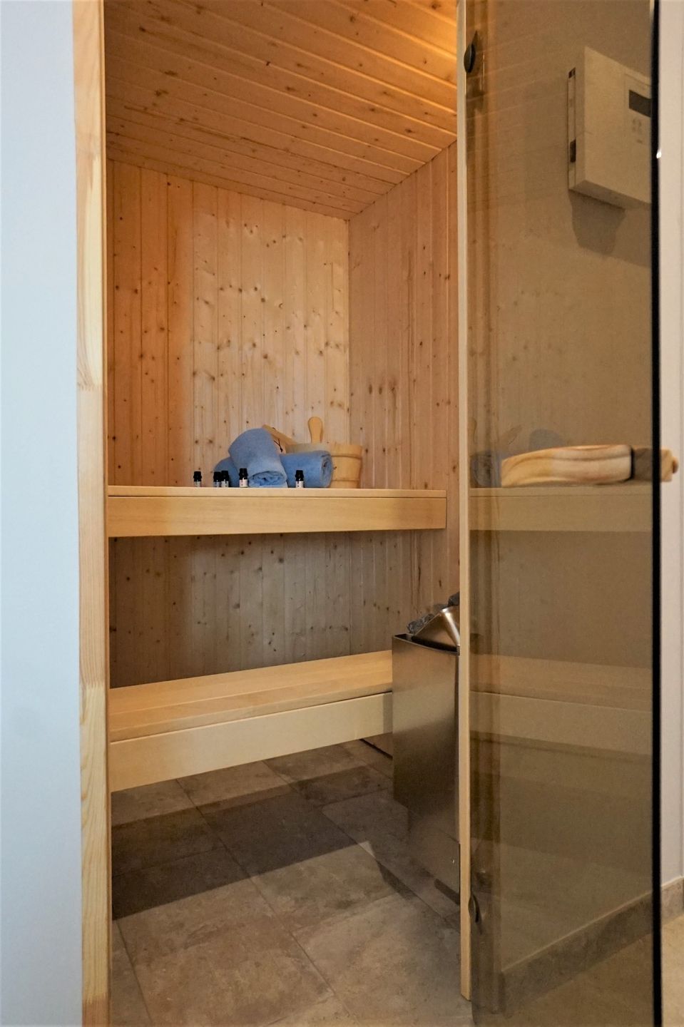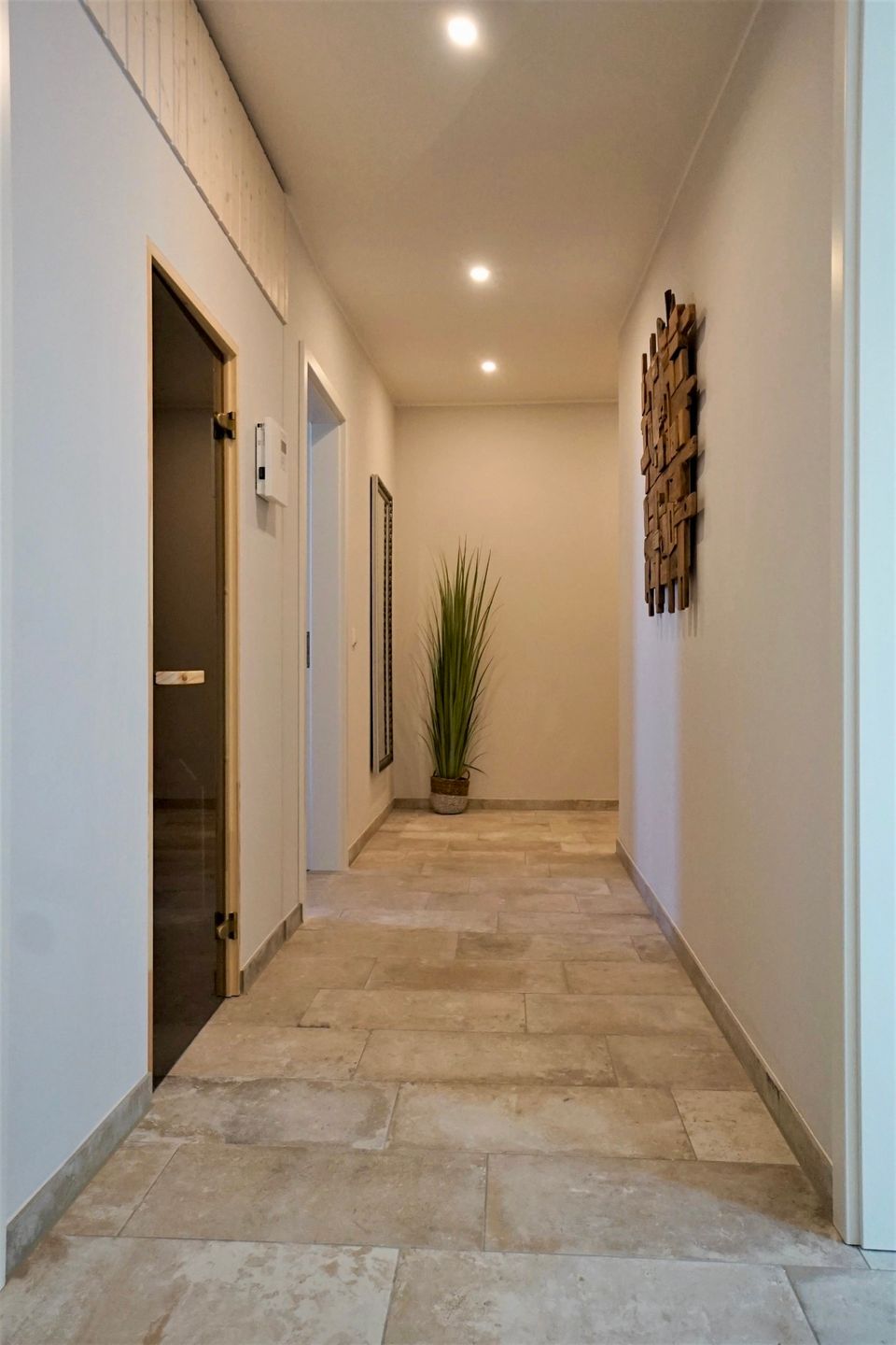 Hier erwarten Sie Fußbodenheizung, 3fach verglaste Fenster mit elektrischen Außenjalousien, modernste Lüftungsanlage, Power W-LAN, Bluetooth Radio, Fahrstuhl von der Tiefgarage aus, hochwertige Designer-Möbel, zwei Schlafzimmer mit Boxspringbett, Smart-TV im Wohn- und in jedem Schlafzimmer, USB-Steckdosen, moderne vollausgestattete Küche mit Geschirrspüler, ein großes Badezimmer mit bodentiefer Dusche, Handtuchheizkörper und Föhn. Zusätzlich gibt es ein Gäste-WC. Von einem Schlafzimmer haben Sie direkten Zugang zu Ihrem begehbaren Kleiderschrank. Weiterhin verfügt die Wohnung über eine eigene Sauna.