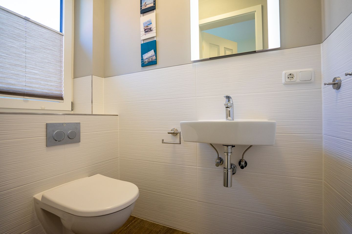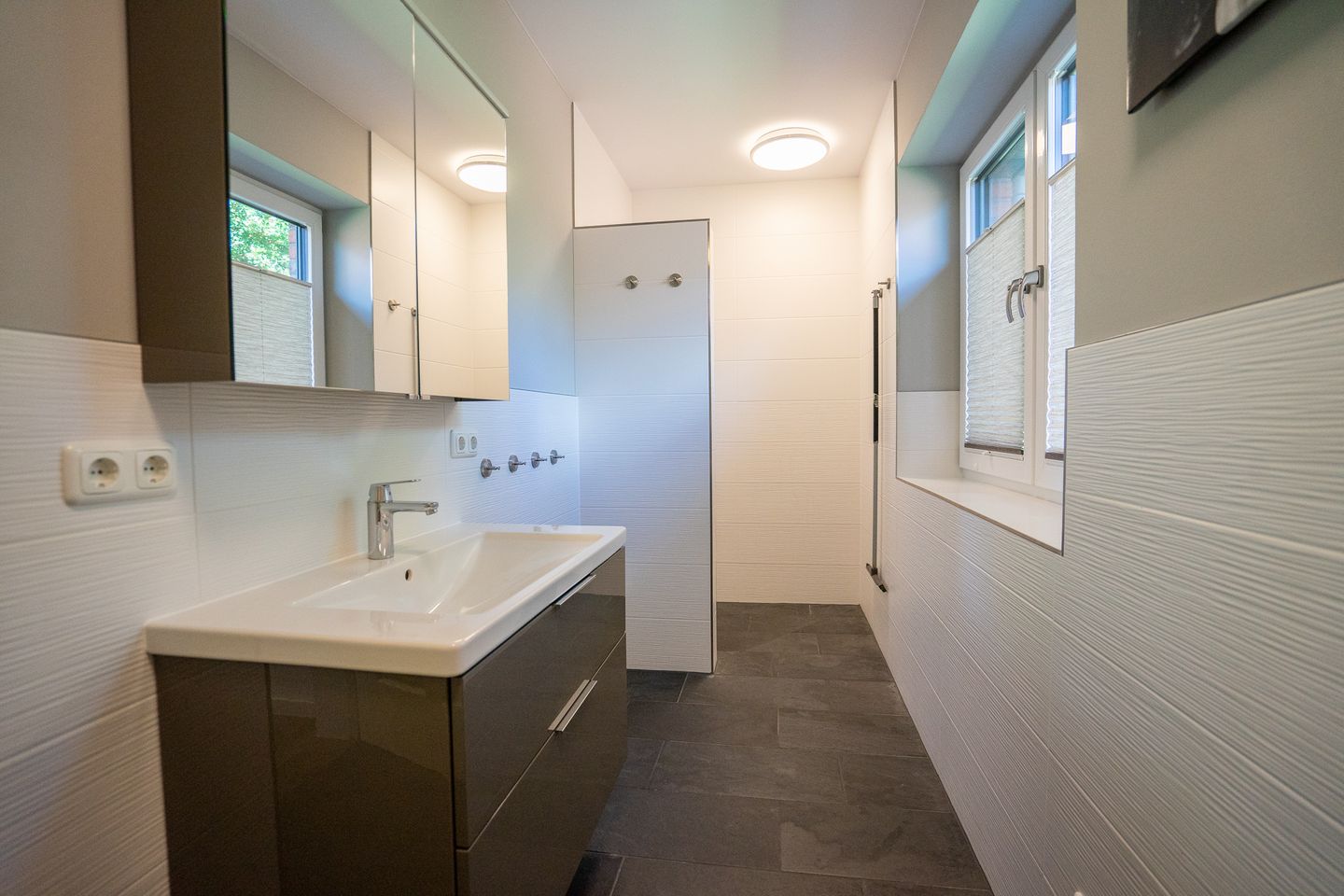 Sie finden zwei Bäder mit ebenerdiger Dusche und ein Gäste-WC in unserer Wohnung.
