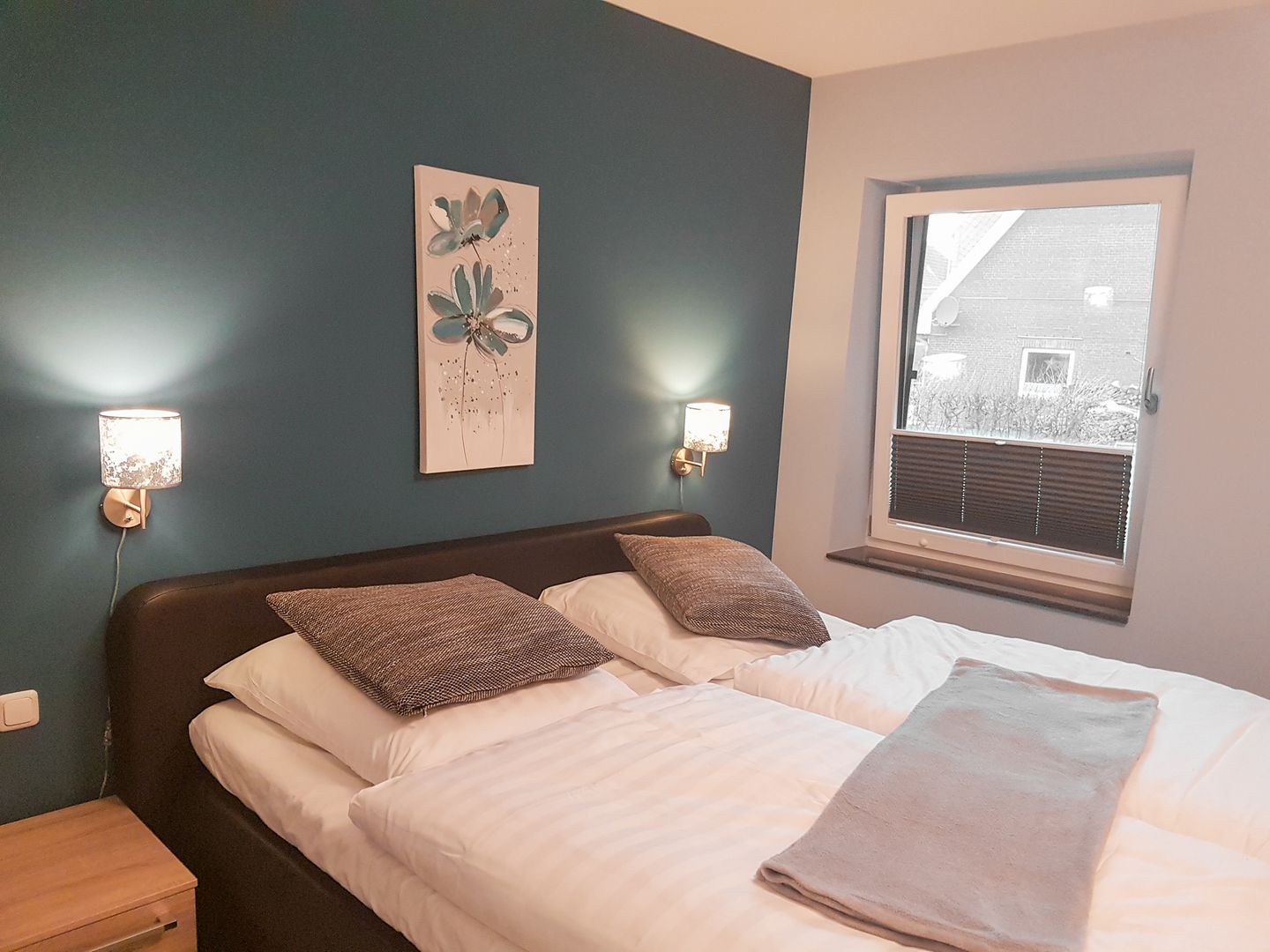 Es gibt drei Schlafzimmer mit Doppel-Boxspringbetten und je einem eigenen TV Gerät mit Internetzugang.