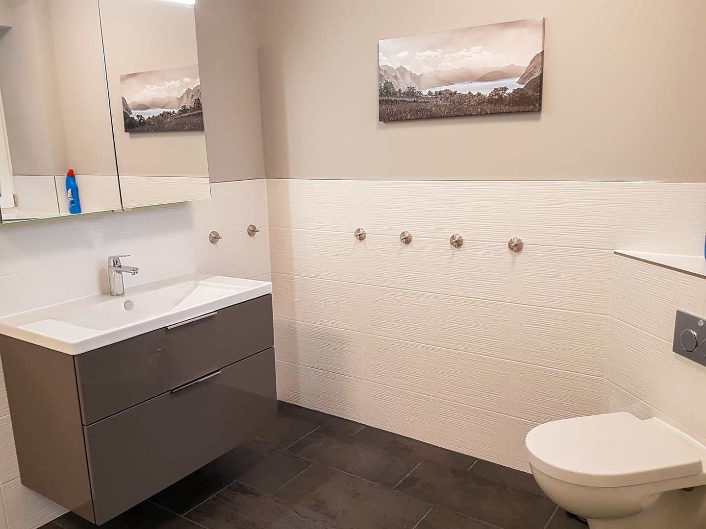 Es gibt zwei Bäder mit ebenerdiger Dusche.