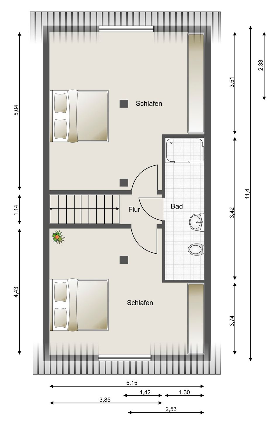 Alle Wohnungen verfügen über einen PKW-Stellplatz. Bitte beachten Sie hier, dass Ihr PKW die Höchstmaße von 5 Meter Länge und 1,50 Meter Höhe nicht überschreitet.