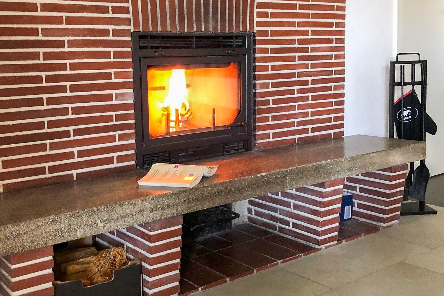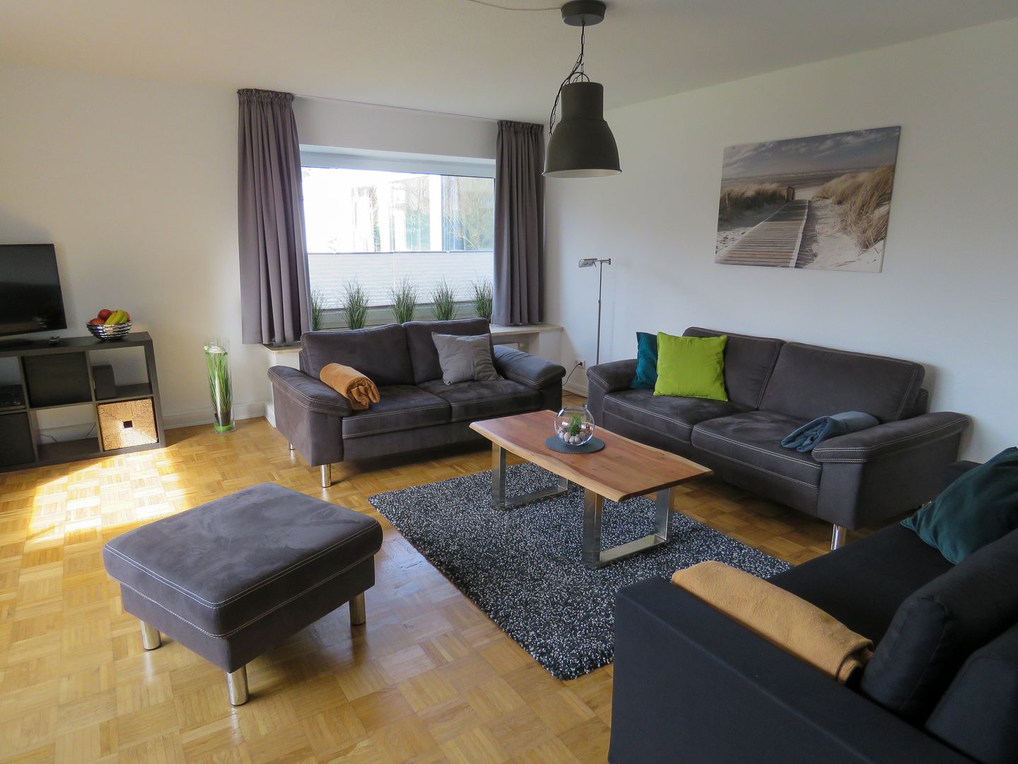 Der Wohnbereich ist großzügig geschnitten und kommt mit einem besonderen Highlight daher: Vor dem Kamin können Sie sich nach einem windverwehten Küstentag herrlich einkuscheln.
