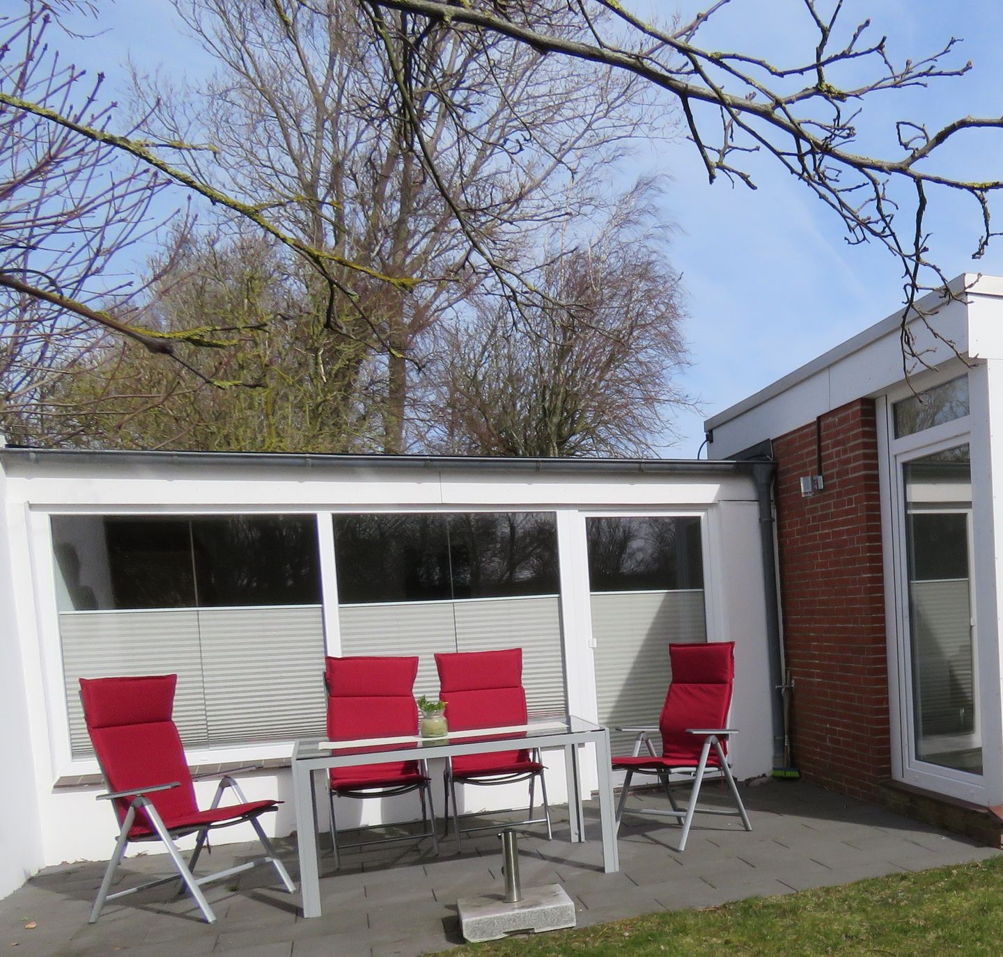 Die beiden großen Wohnungen verfügen jeweils über zwei Parkplätze (je nach Größe des PKWs) und die kleine über einen Parkplatz.