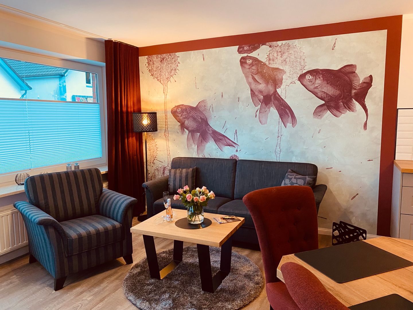Die helle, im Erdgeschoß gelegene, Wohnung zeichnet sich durch ihre liebevolle und behagliche Einrichtung aus.