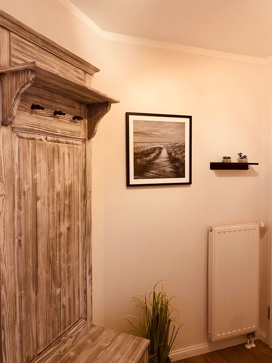 Durch den Eingang gelangt man in den Flurbereich zum sonnigen Wohnzimmer mit Zugang zur Terrasse.