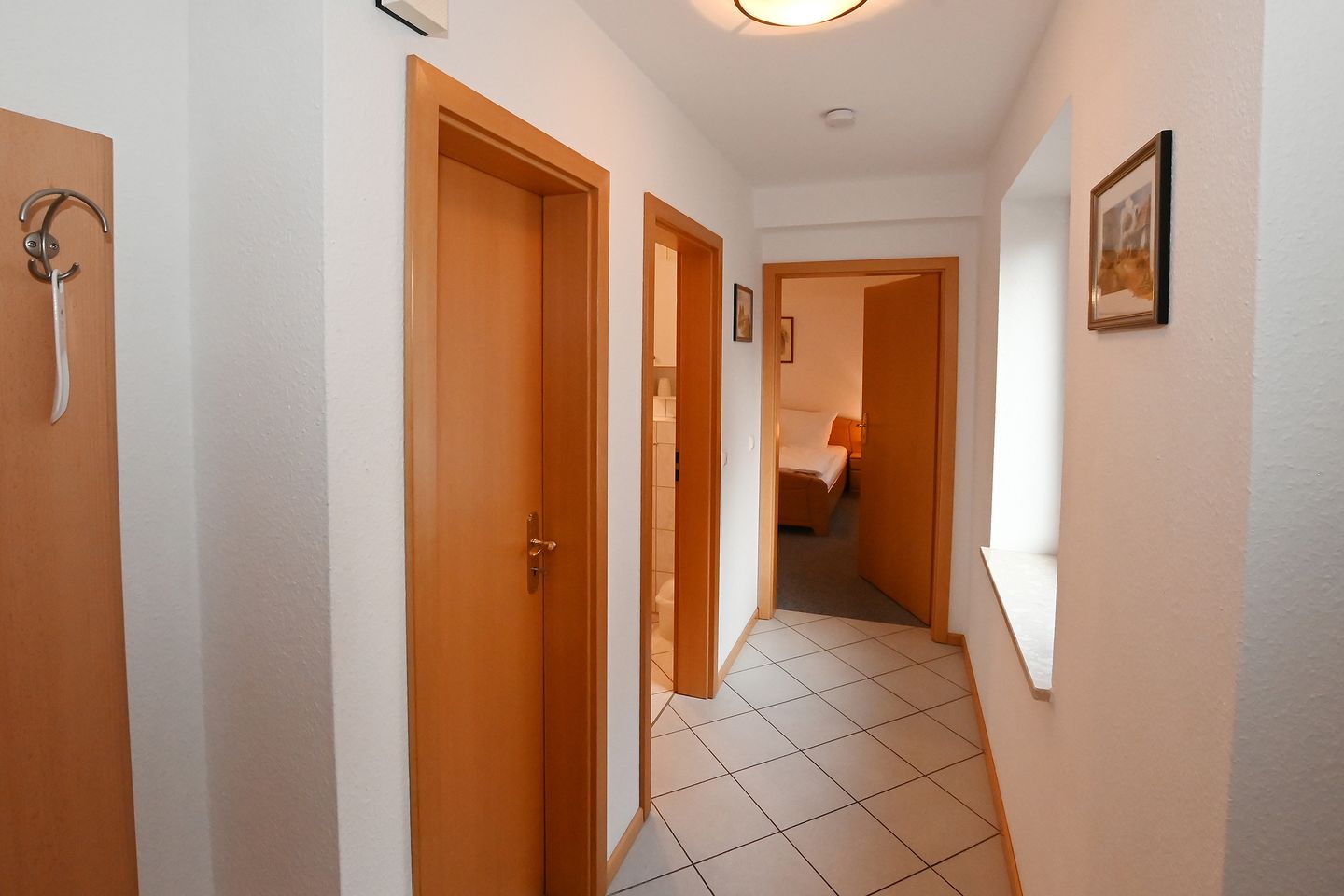 Durch den separaten Eingang gelangt man in den Flurbereich zum sonnigen Wohnzimmer mit Zugang zur Terrasse.