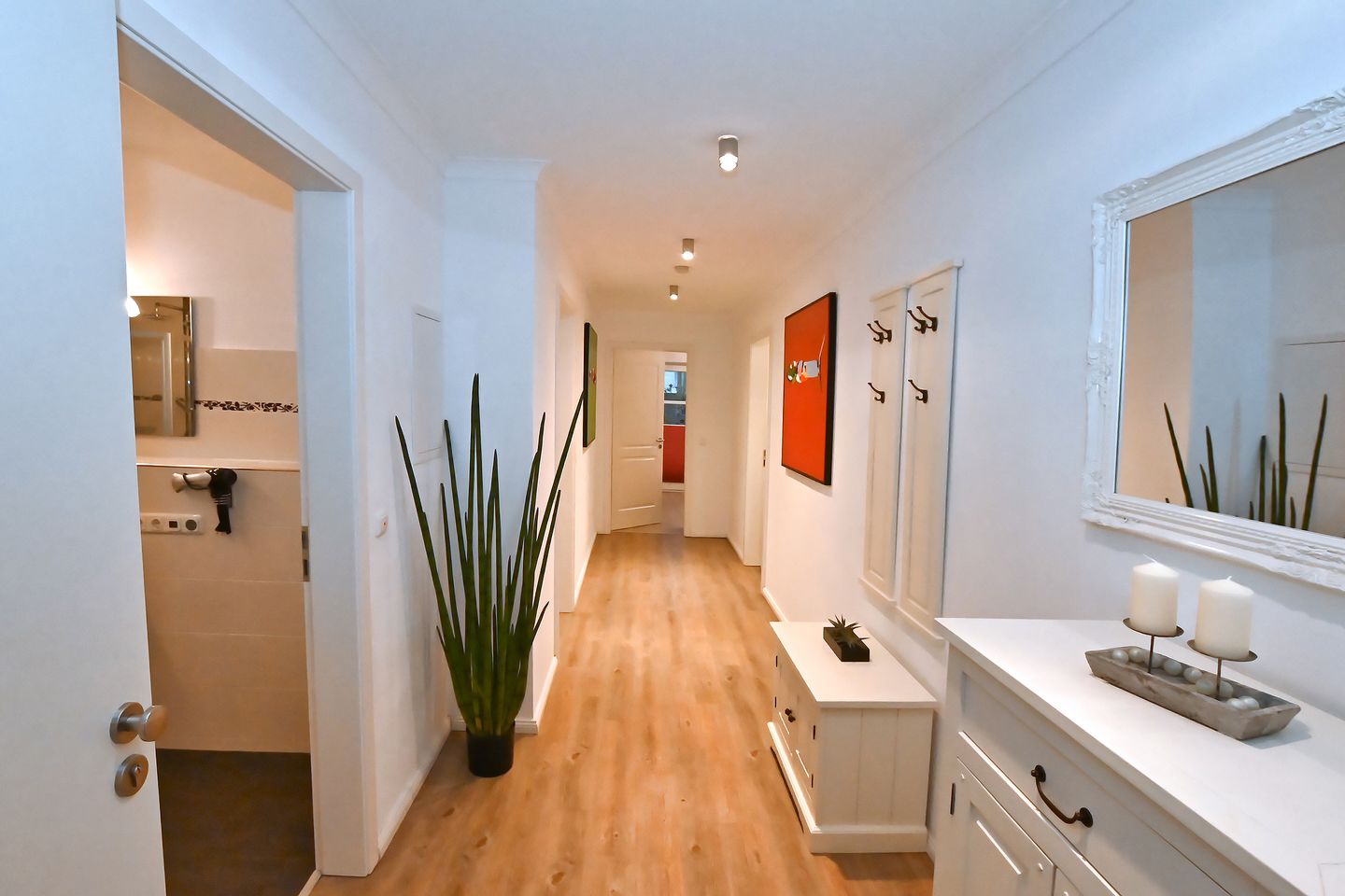 Sobald Sie eintreten, stehen Sie in dem Eingangsbereich der modernen und komfortabel gestalteten Wohnung.
