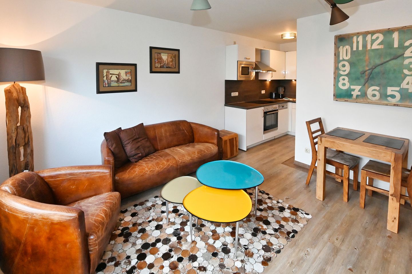 Die helle, komplett renovierte Wohnung zeichnet sich durch ihre liebevolle und behagliche Einrichtung aus. Durch den separaten Eingang gelangt man in den Flurbereich zum sonnigen Wohnzimmer mit Terrasse.