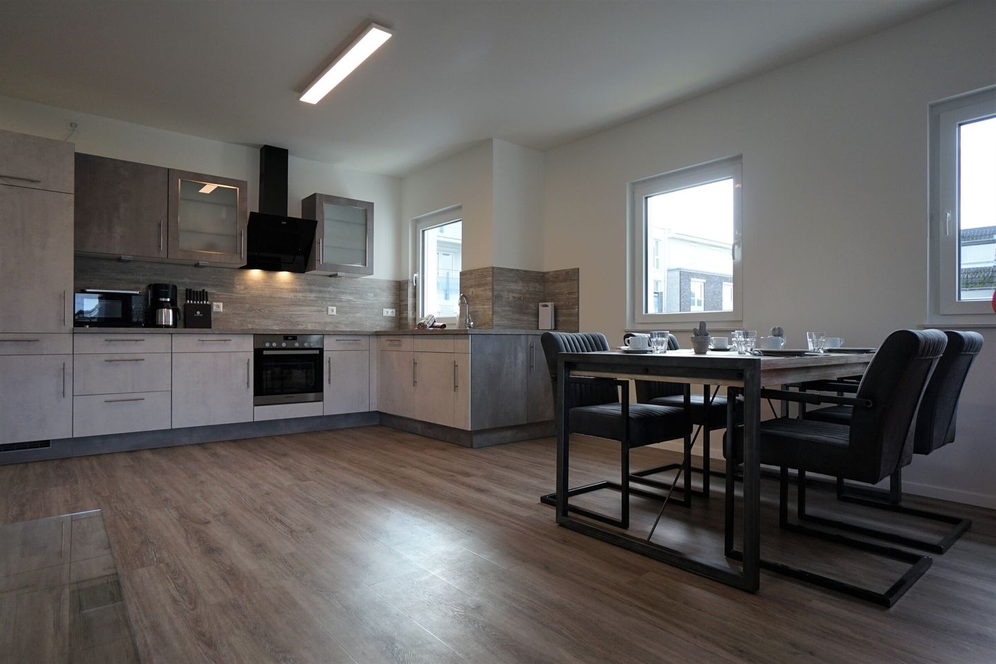 Die integrierte Küche ist großzügig ausgestattet und lässt keine Wünsche offen. Auch eine Waschmaschine und ein Trockner sind vorhanden.