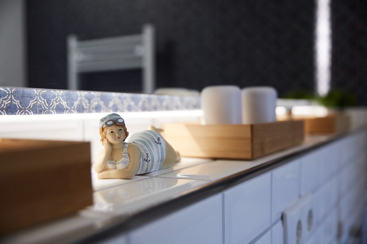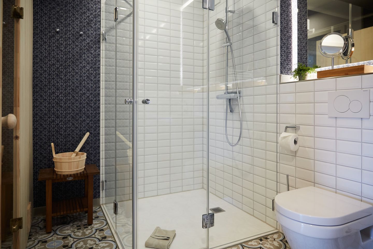 Wie in der gesamten Wohnung, fällt auch hier sofort die liebevolle Dekoration auf. Als Highlight im Badezimmer können Sie Ihre private Sauna genießen.