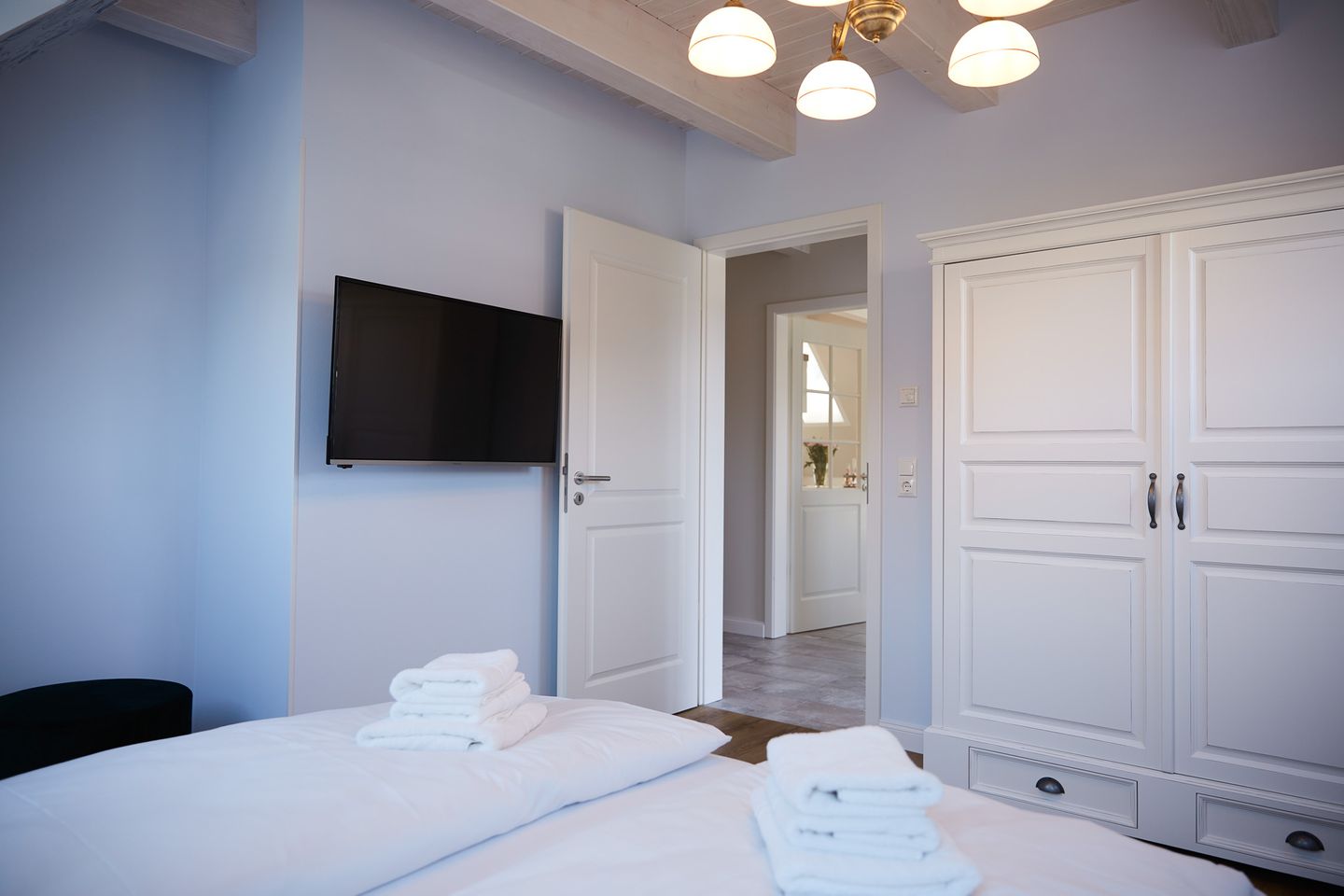 Dort genießen Sie einen Komfort der Extraklasse. Ihre Unterkunft ist mit hochwertigen Möbeln in Manufakturqualität, einer voll ausgestatteten Premiumküche und modernster Technik eingerichtet. Dazu zählen Power W-Lan, Smart TV’s und eine energetische, nachhaltige Bauweise mit Lüftungsanlage, Fußbodenheizung und Luft-Wärmepumpe.