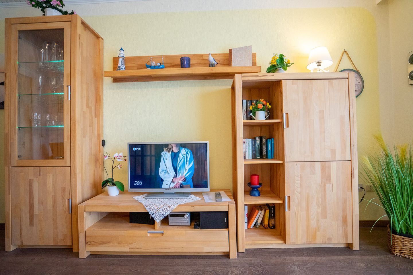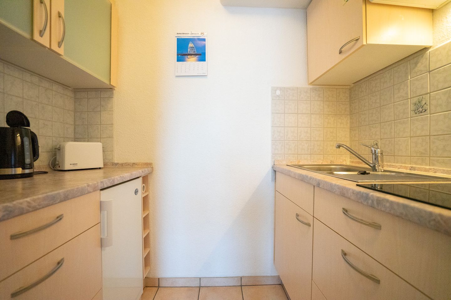 Durch die zentrale Lage, kombiniert mit der Nähe zum Wasser, können Sie hier Ihren Urlaub in vollen Zügen genießen. Die Wohnung befindet sich in der zweiten Etage, welche mit dem Fahrstuhl zu erreichen ist. Im Wohnzimmer steht Ihnen Kabel-TV zur Verfügung. Vom Wohnzimmer gelangen Sie auf den großzügigen Balkon, von wo aus Sie direkt auf den dazugehörigen Parkplatz gucken können. Die kleine separate Küche geht ebenso vom Wohnzimmer ab.