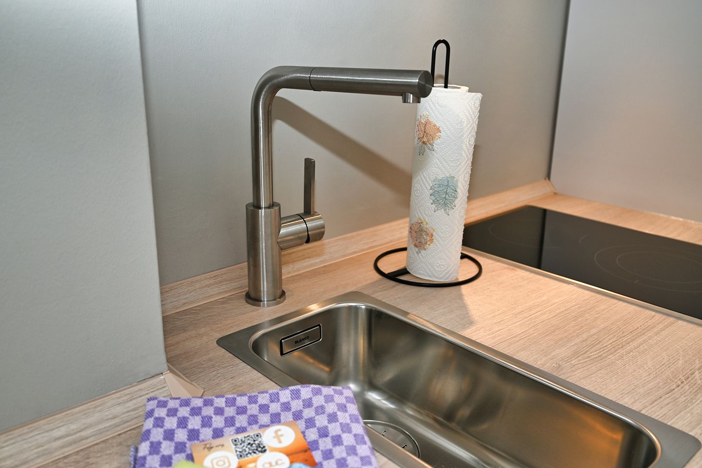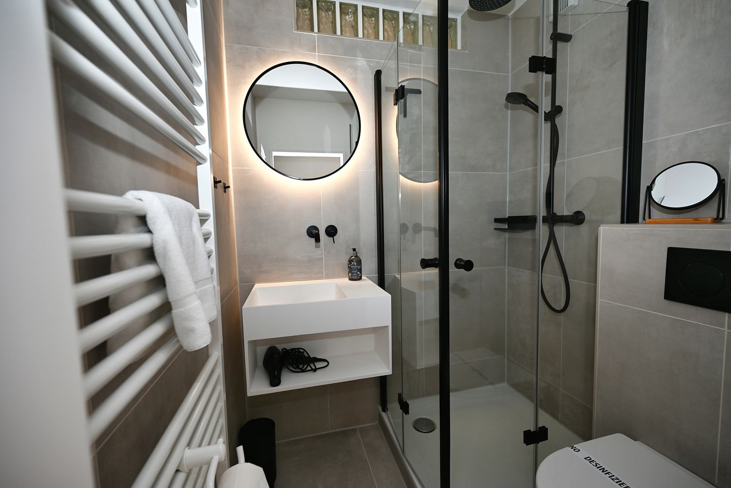 Im Wohnbereich verfügt die Wohnung über eine Außenjalousie. Die Schlafzimmer sind mit Velux-Verdunkelungsrollos ausgestattet.