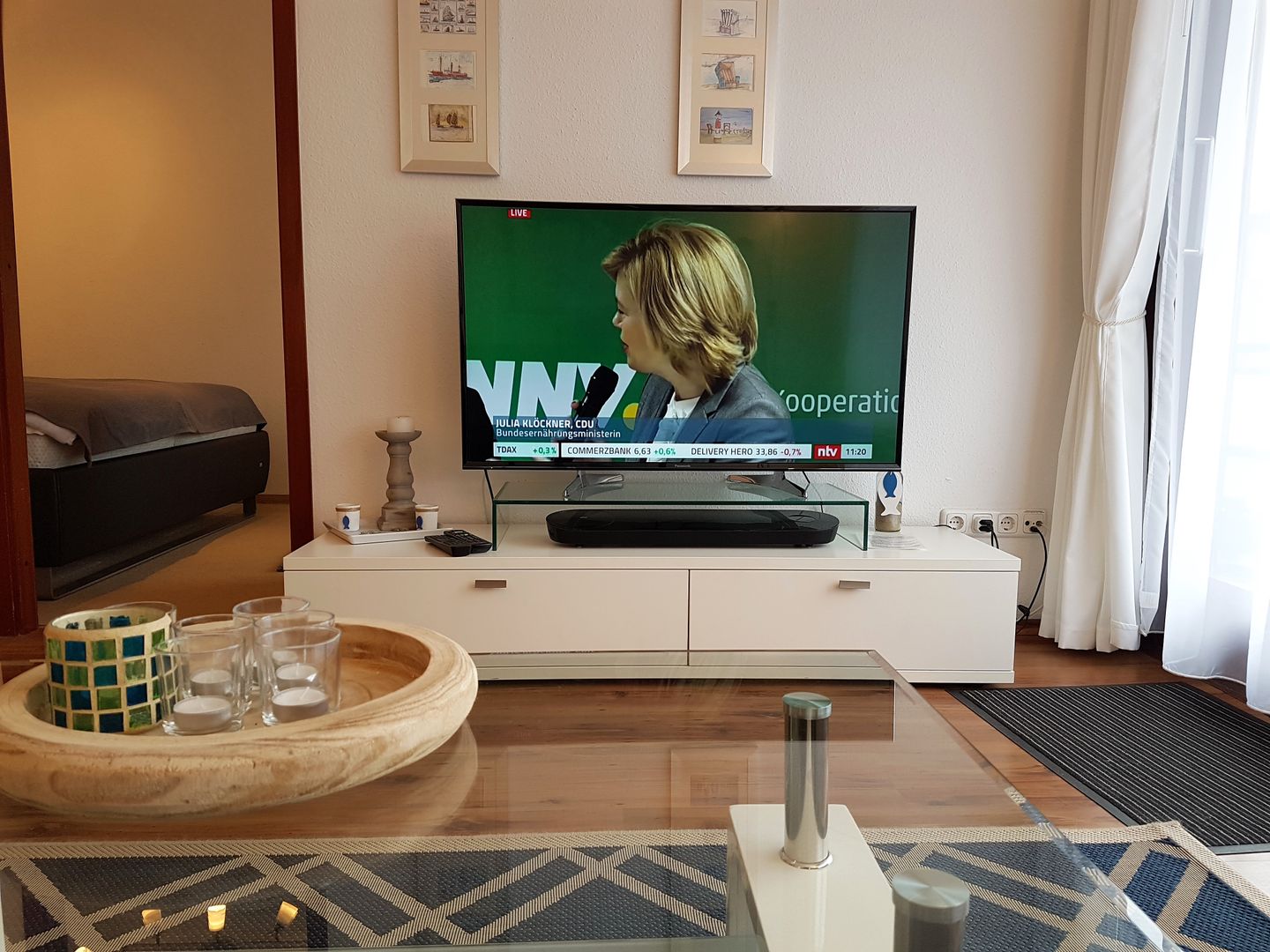Ihre Unterkunft verfügt über ein Schlafzimmer und ein Wohn- und Essbereich. Das Sofa im Wohnzimmer dient im ausgeklappten Zustand als zweites Bett.
