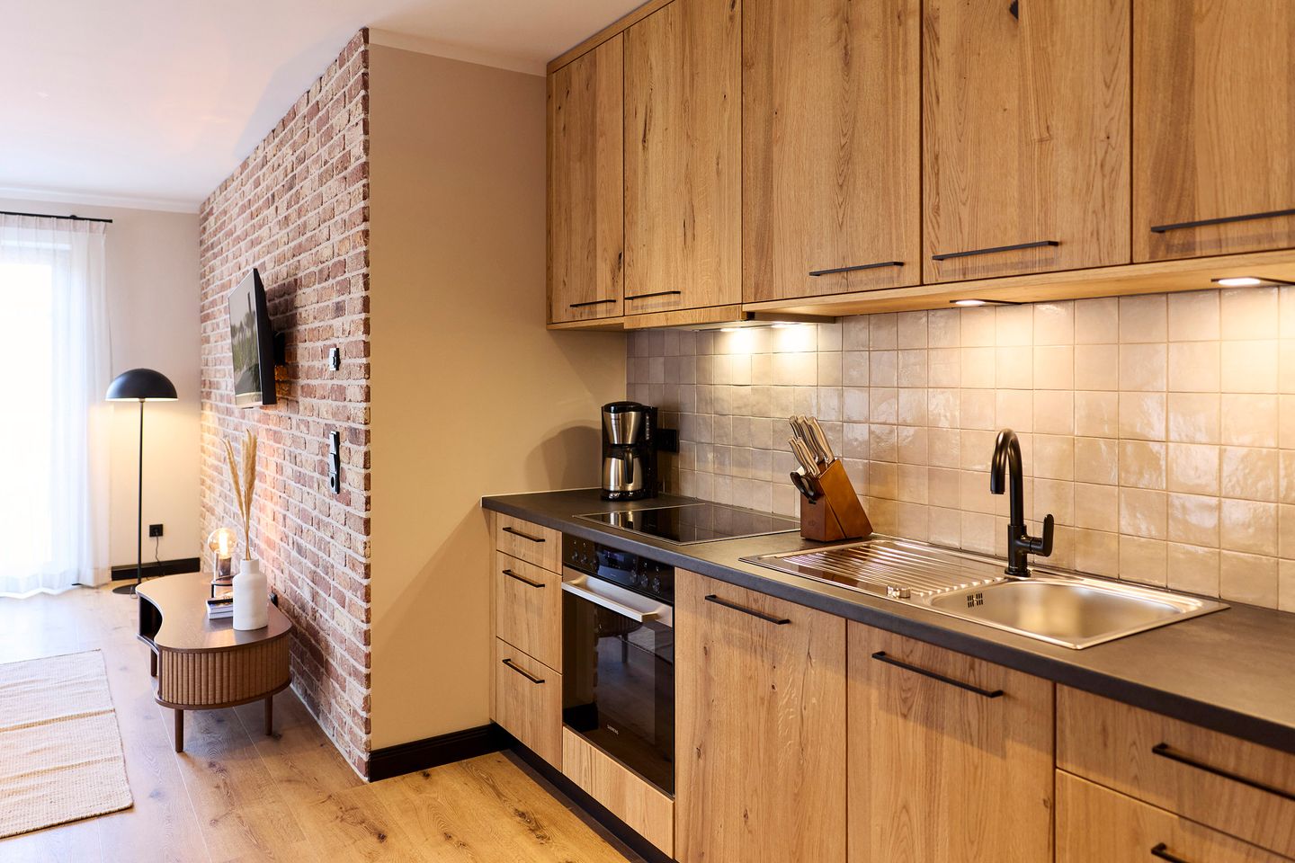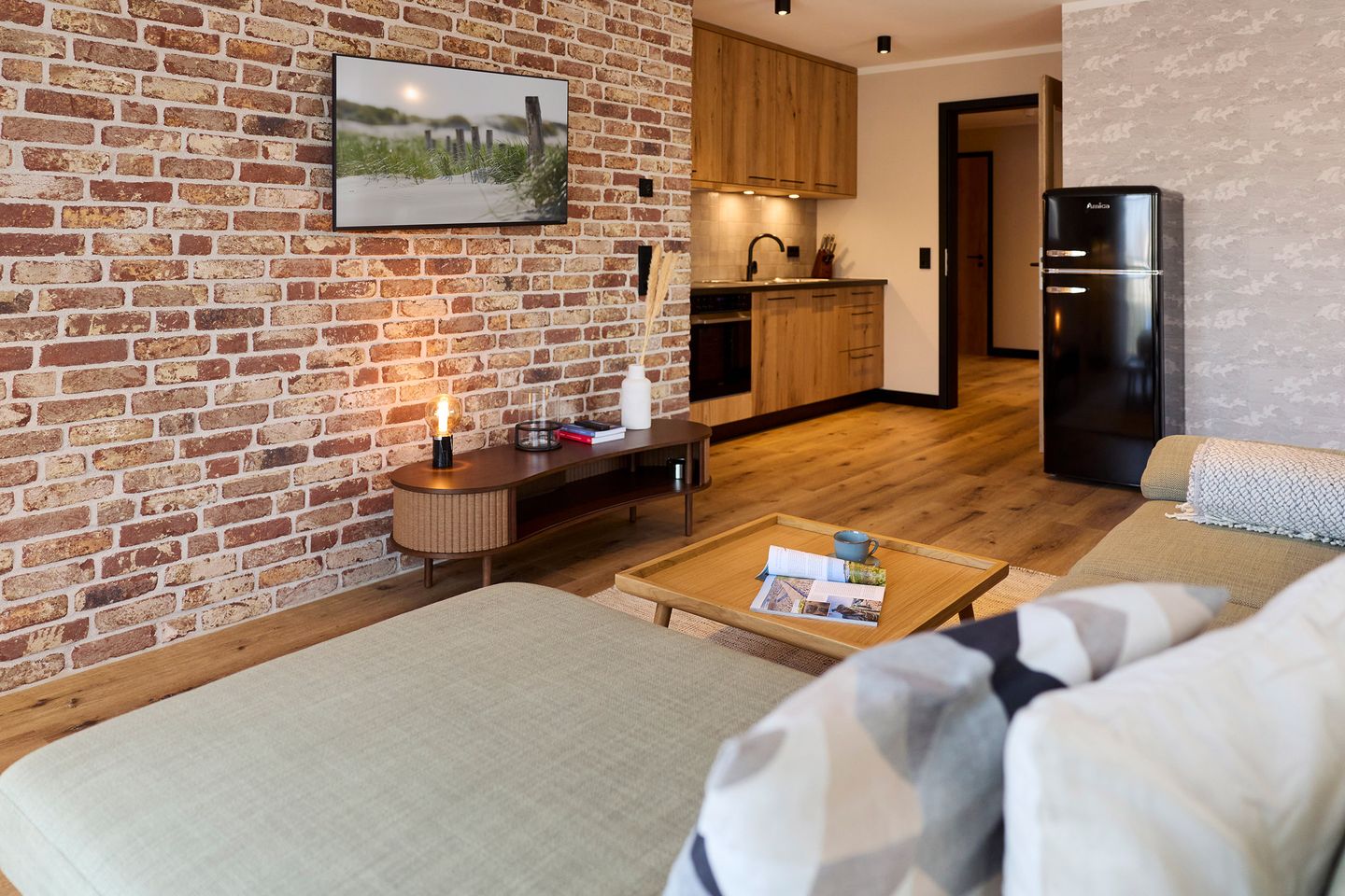 Auf rund 85 Quadratmetern finden vier Gäste Ihr kleines Urlaubsrefugium mit nordischem Wohlfühldesign. Genießen Sie das entspannte Ambiente im lässigen Industrial Style, das gleichzeitig jede Menge Cozyness versprüht.