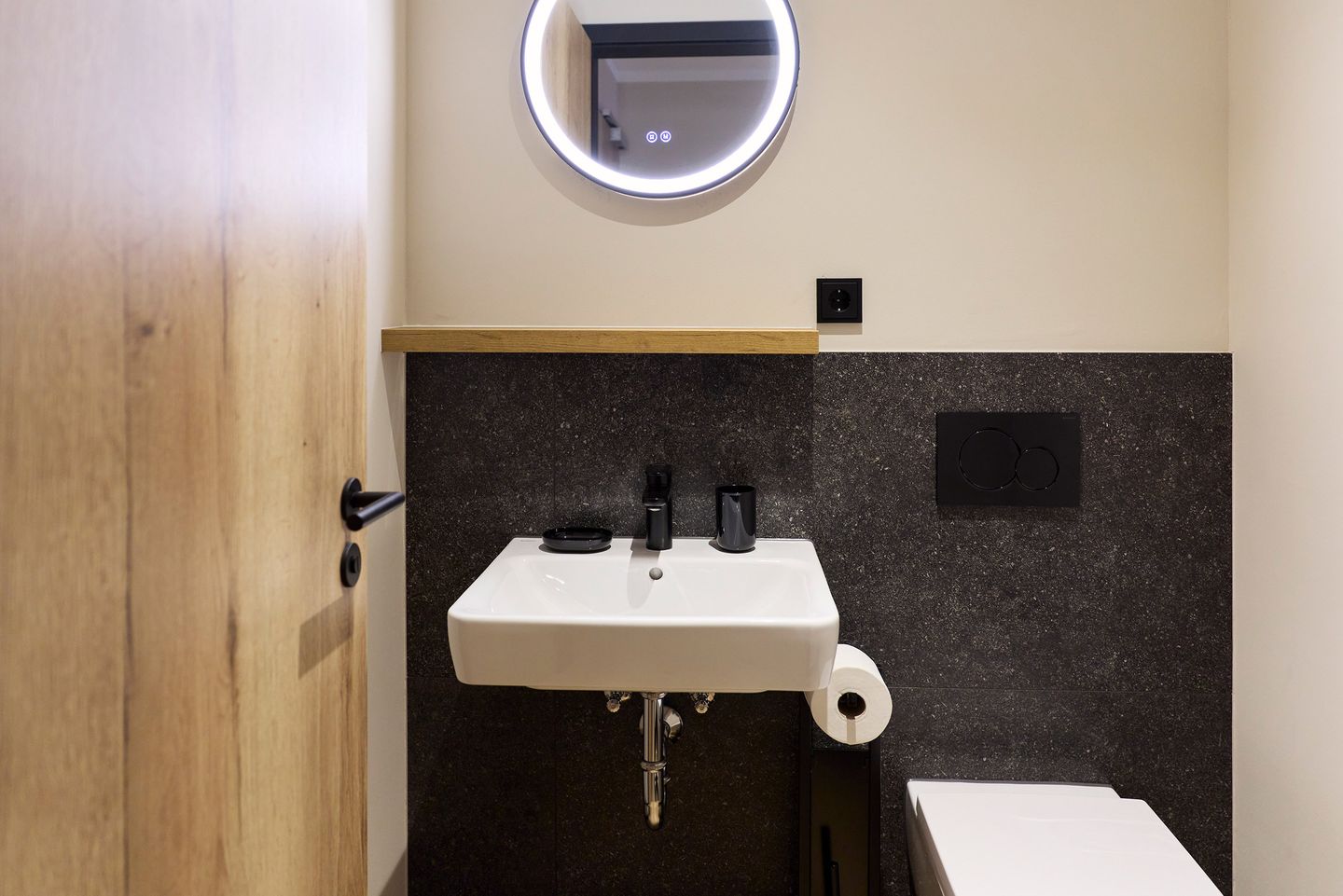 Auf dem möblierten Balkon lässt sich der Urlaubstag mit einem Frühstück in der Sonne beginnen. Die zwei Schlafzimmer sind mit je einem komfortablen Doppelbett, Schrank und Smart TV ausgestattet. Zudem verfügt das Apartment über ein modernes, mit anthrazitfarbenen Natursteinfliesen gestaltetes Badezimmer und ein separates WC.