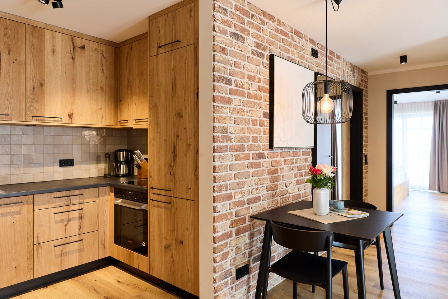 Auf rund 80 Quadratmetern finden zwei Gäste Ihr kleines Urlaubsrefugium mit nordischem Wohlfühldesign. Genießen Sie das entspannte Ambiente im lässigen Industrial Style, das gleichzeitig jede Menge Cozyness versprüht.