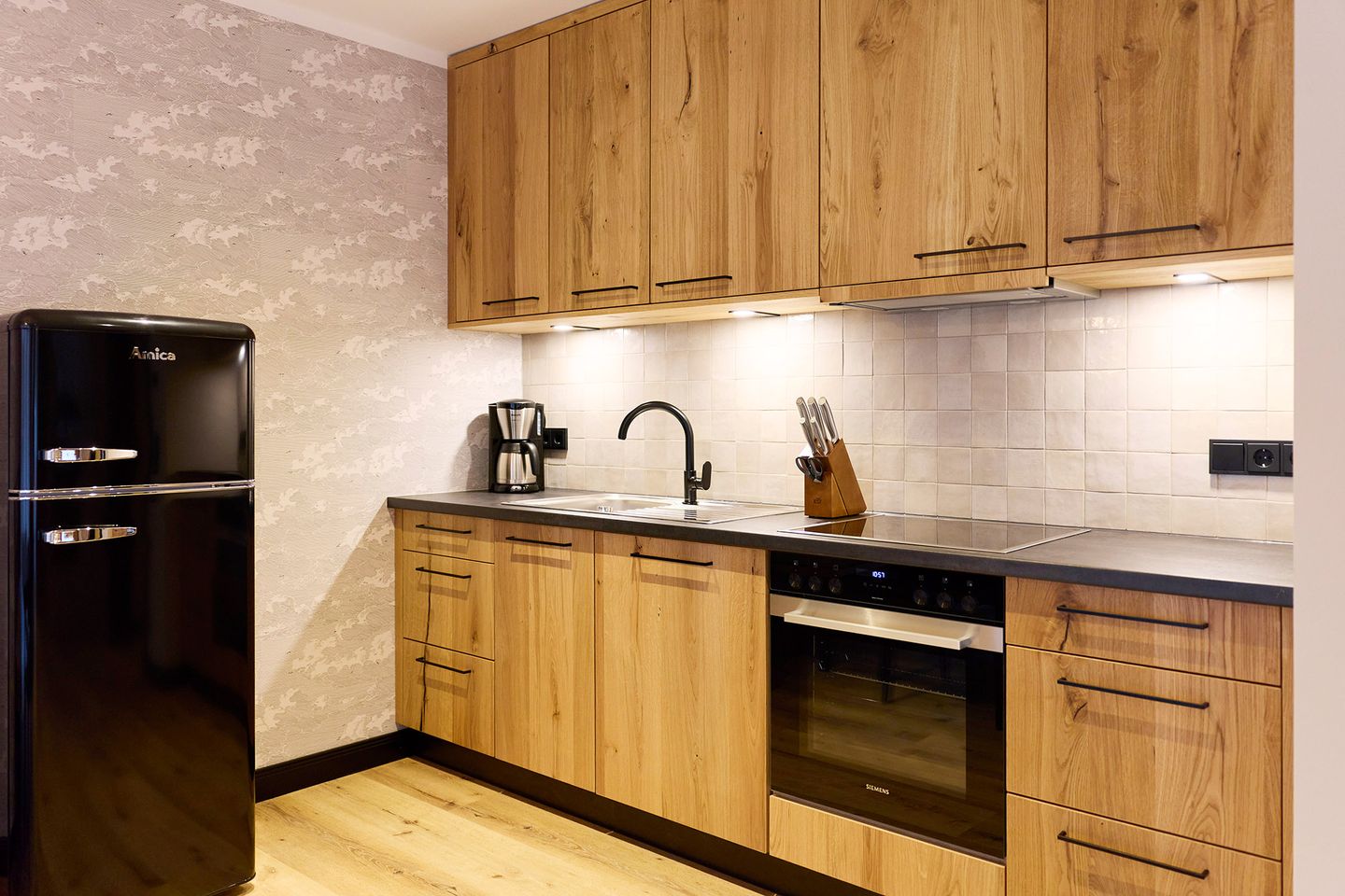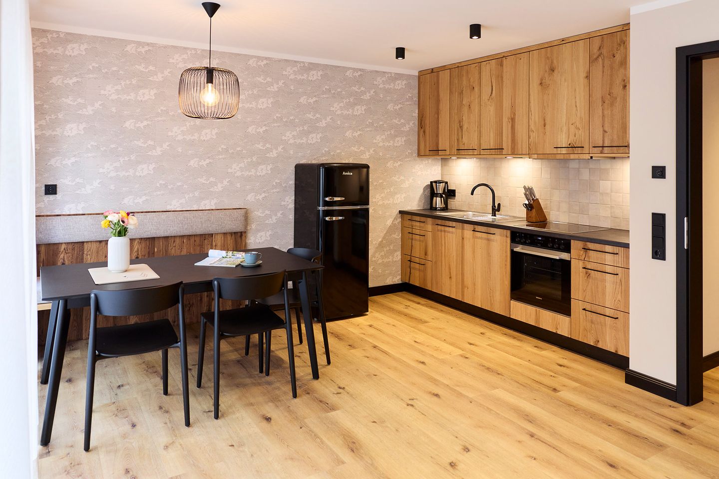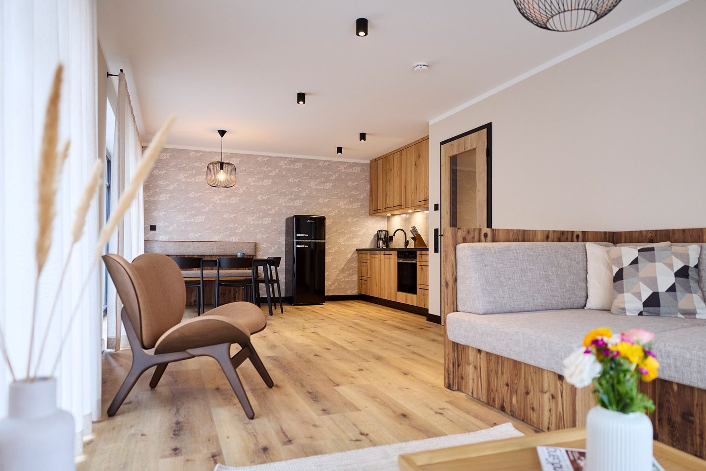 Auf rund 82 Quadratmetern finden vier Gäste Ihr kleines Urlaubsrefugium mit nordischem Wohlfühldesign. Genießen Sie das entspannte Ambiente im lässigen Industrial Style, das gleichzeitig jede Menge Cozyness versprüht.