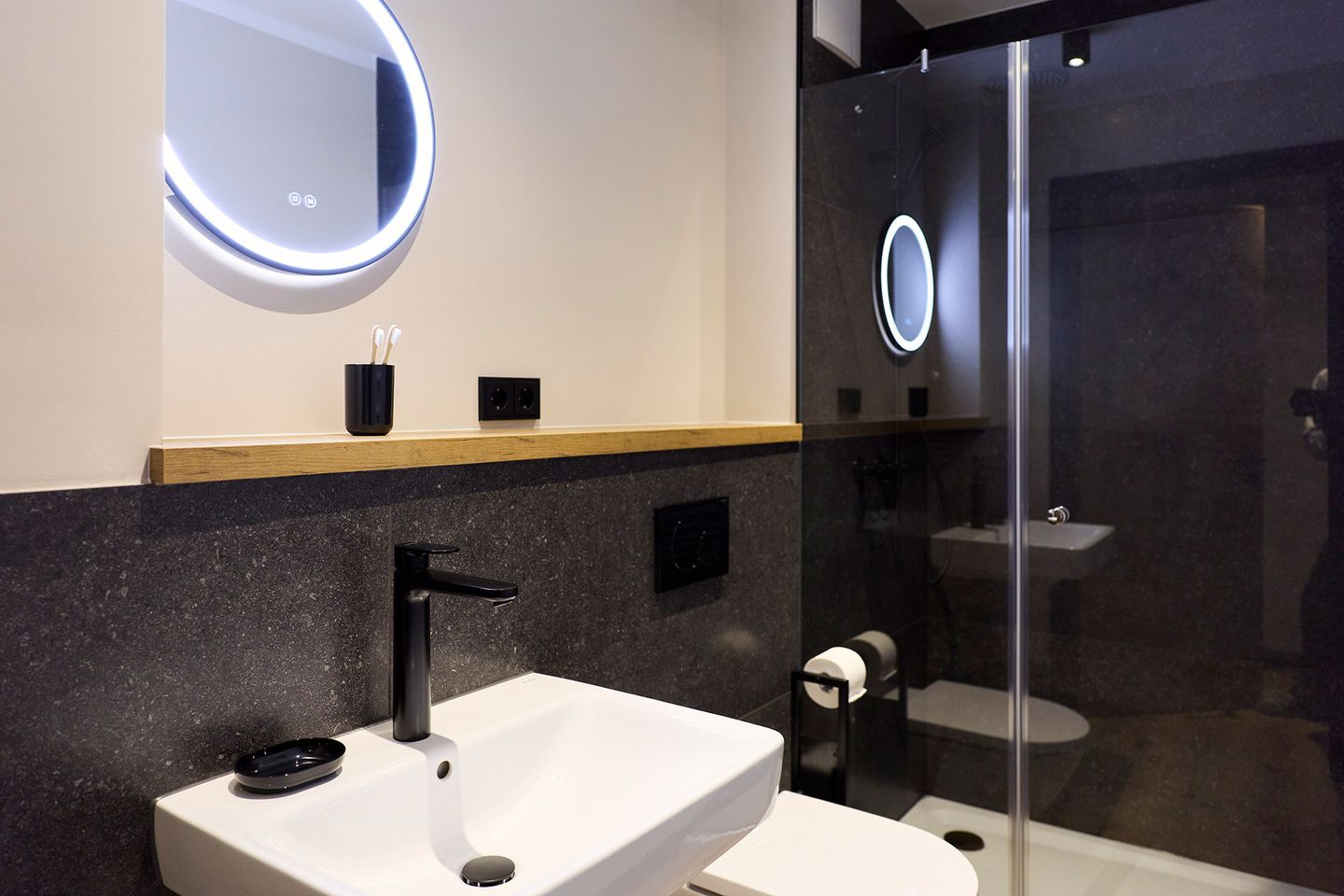 Zusätzlich sorgen schallisolierte 3-fach verglaste Fenster und eine Fußbodenheizung für maximale Behaglichkeit.