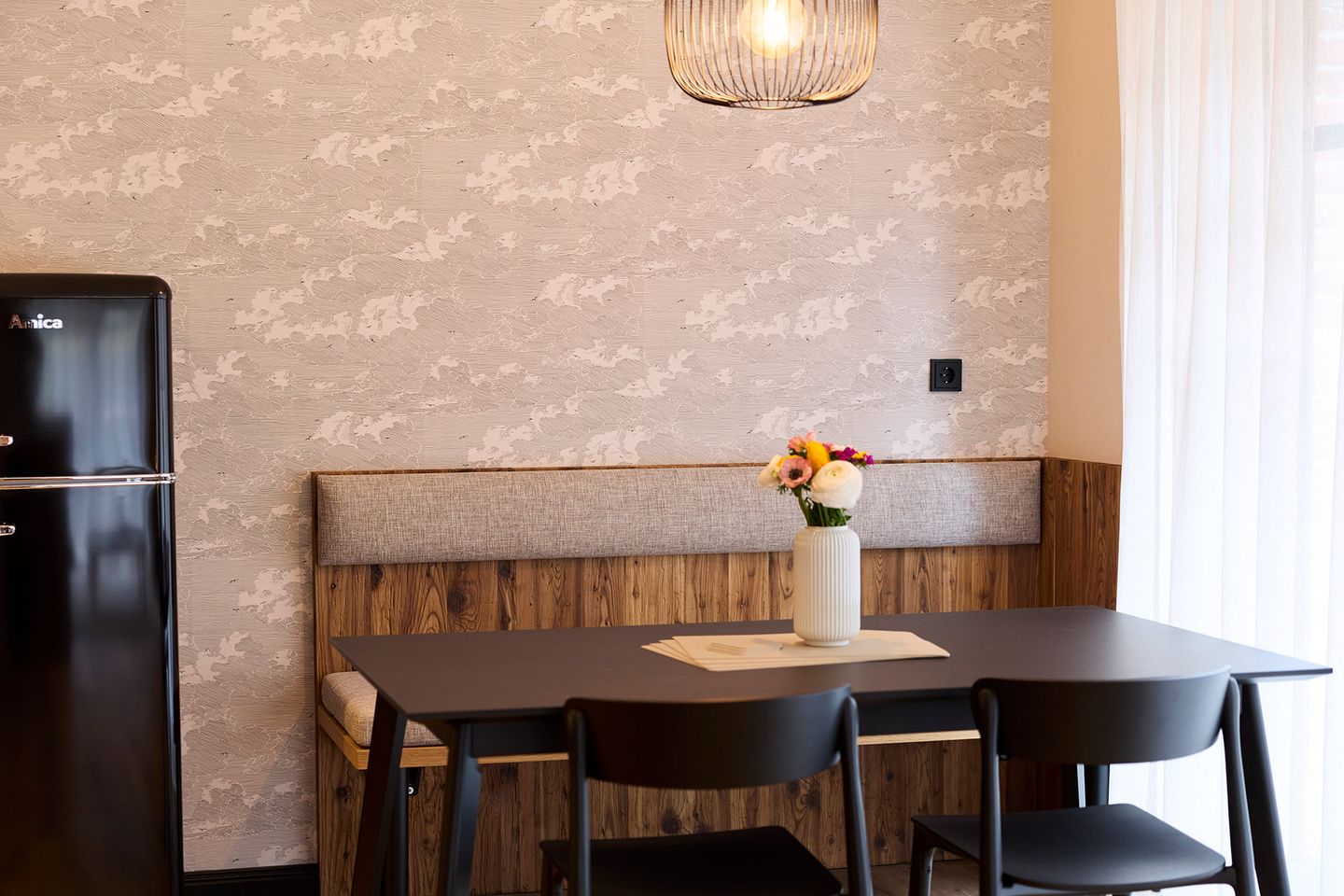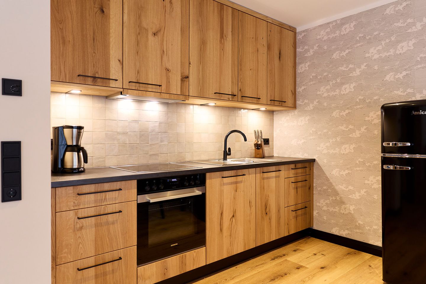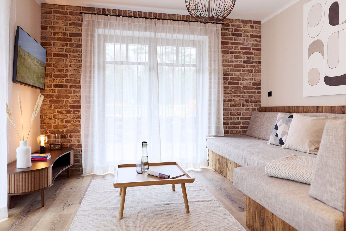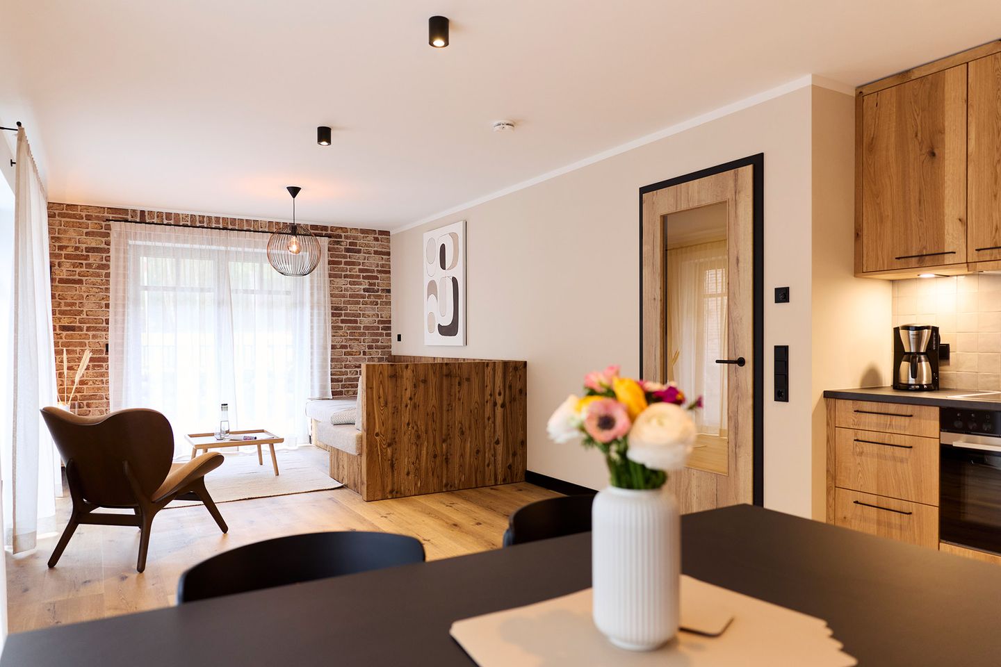 Auf rund 82 Quadratmetern finden vier Gäste Ihr kleines Urlaubsrefugium mit nordischem Wohlfühldesign. Genießen Sie das entspannte Ambiente im lässigen Industrial Style, das gleichzeitig jede Menge Cozyness versprüht.