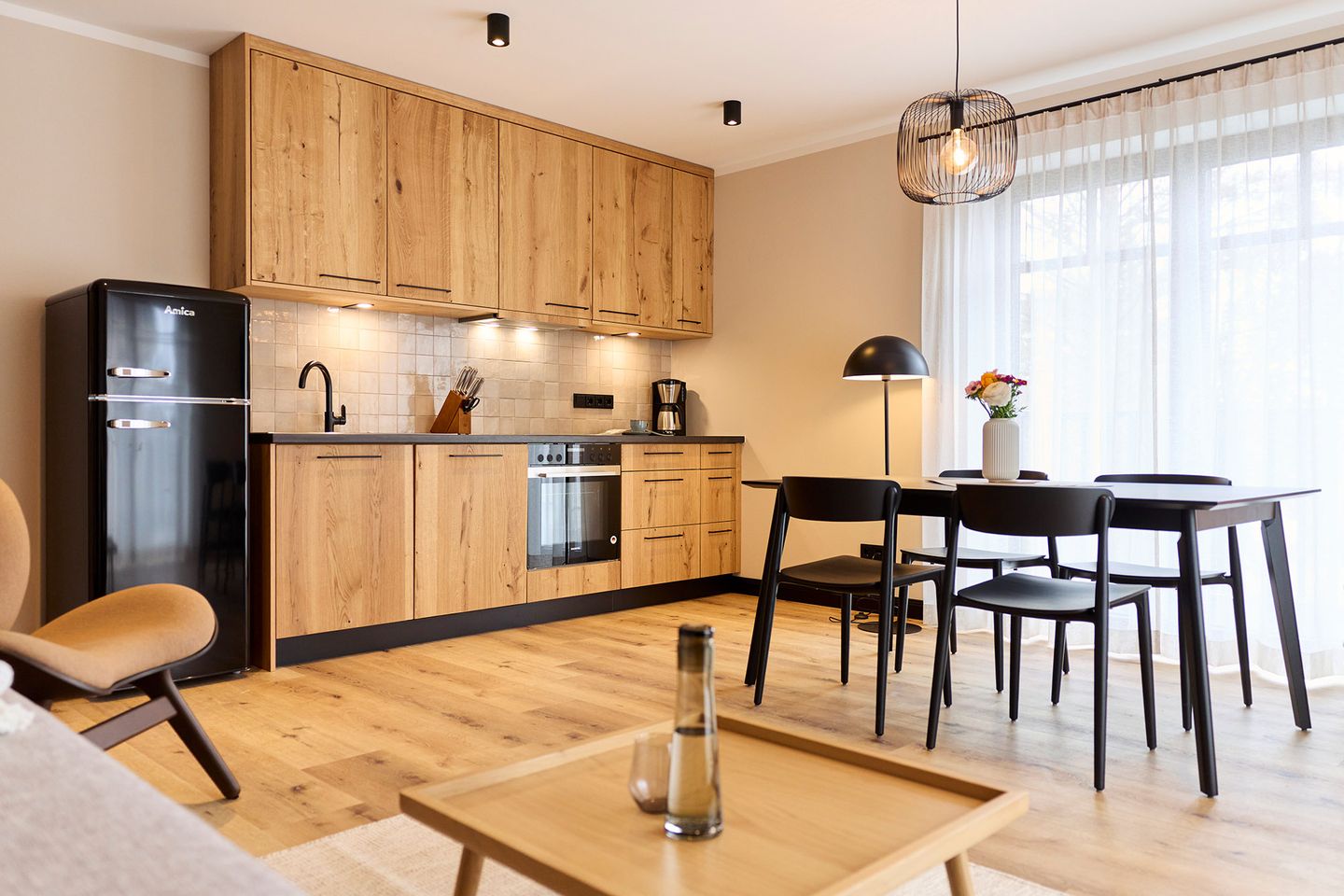 Auf rund 78 Quadratmetern finden vier Gäste Ihr kleines Urlaubsrefugium mit nordischem Wohlfühldesign. Genießen Sie das entspannte Ambiente im lässigen Industrial Style, das gleichzeitig jede Menge Cozyness versprüht.