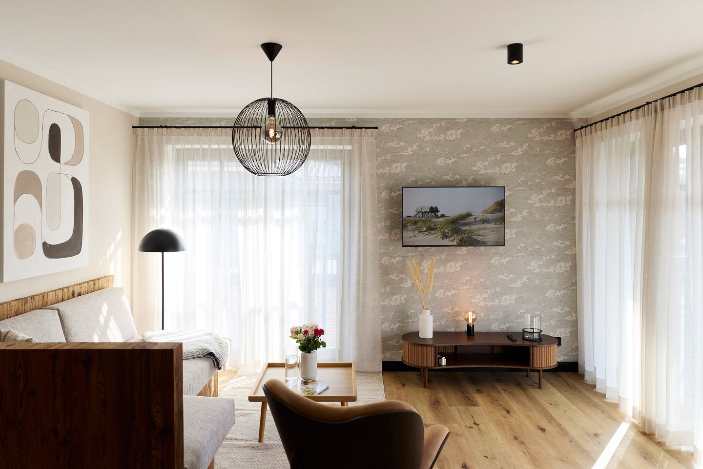 Auf rund 80 Quadratmetern finden zwei Gäste Ihr kleines Urlaubsrefugium mit nordischem Wohlfühldesign. Genießen Sie das entspannte Ambiente im lässigen Industrial Style, das gleichzeitig jede Menge Cozyness versprüht.