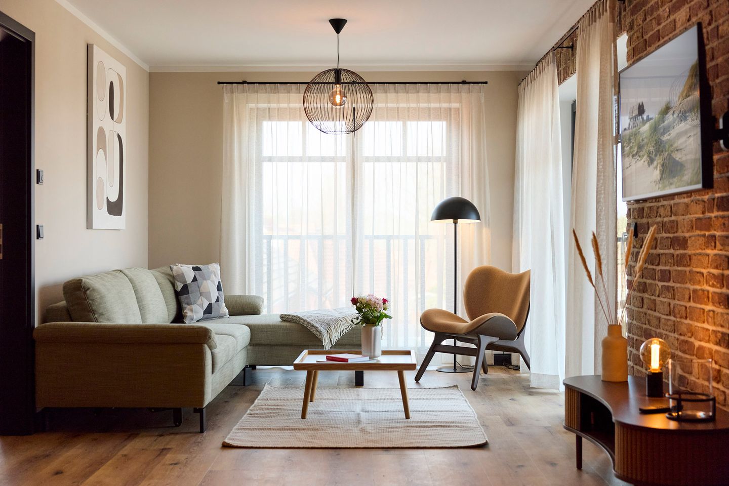 Auf rund 101 Quadratmetern finden vier Gäste Ihr kleines Urlaubsrefugium mit nordischem Wohlfühldesign. Genießen Sie das entspannte Ambiente im lässigen Industrial Style, das gleichzeitig jede Menge Cozyness versprüht.