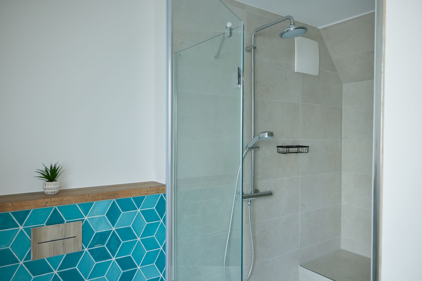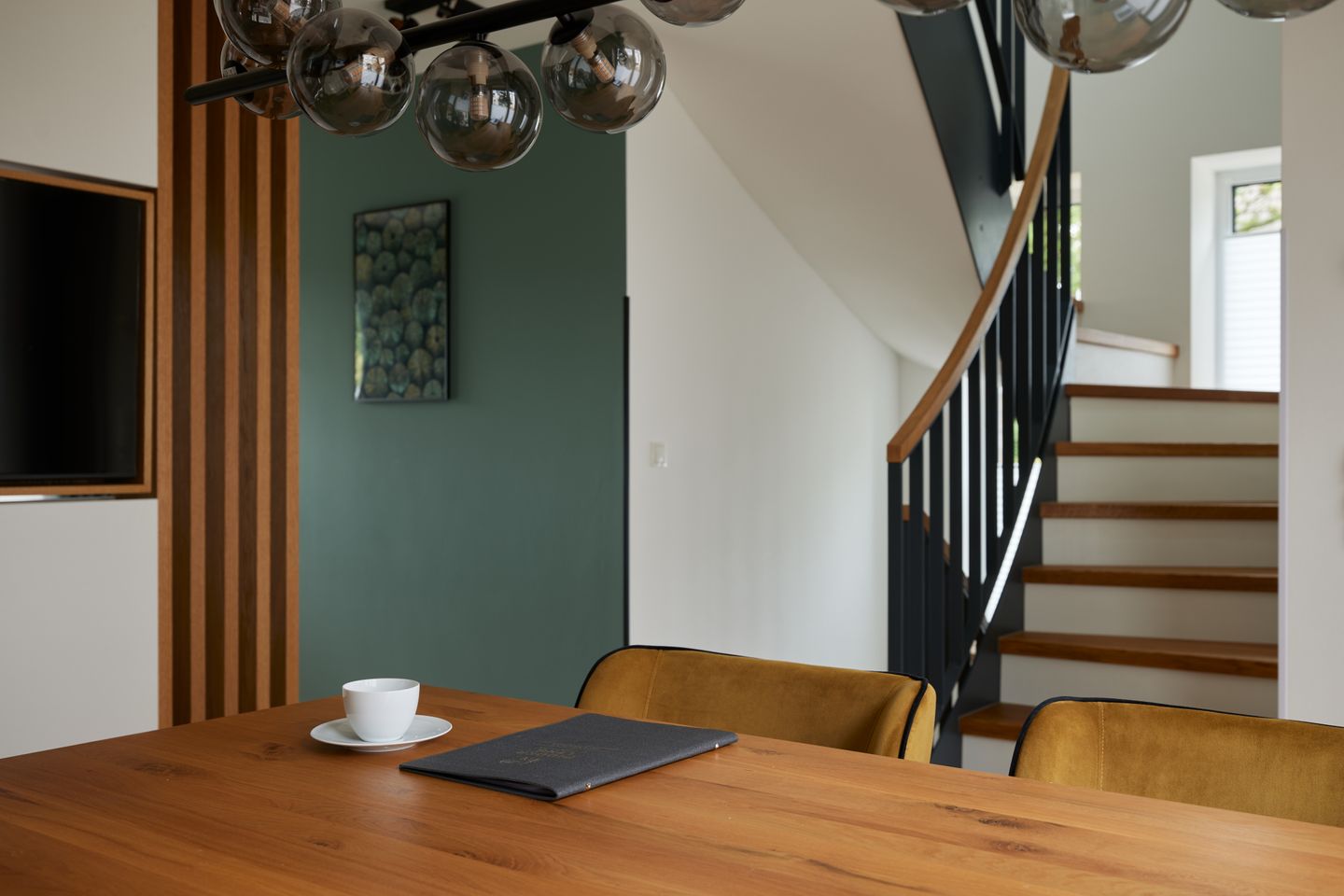 Der ca. 125 m² große Hausteil bietet alles, was Sie sich für eine erholsame Nordsee-Auszeit wünschen: im Erdgeschoss lädt der moderne Wohn- und Essbereich mit offener Küche und Design-Polstermöbeln zum entspannten Zusammensein ein. Die stilvolle Küche mit türkisenen Fronten und goldenen Armaturen ist nicht nur optisch ein Hingucker, sondern auch umfassend ausgestattet. An den Wohnbereich schließt Sie Ihre große Sonnenterrasse mit Blick in die Sandlandschaft an. Zudem finden Sie im Erdgeschoss ein Gäste-WC.