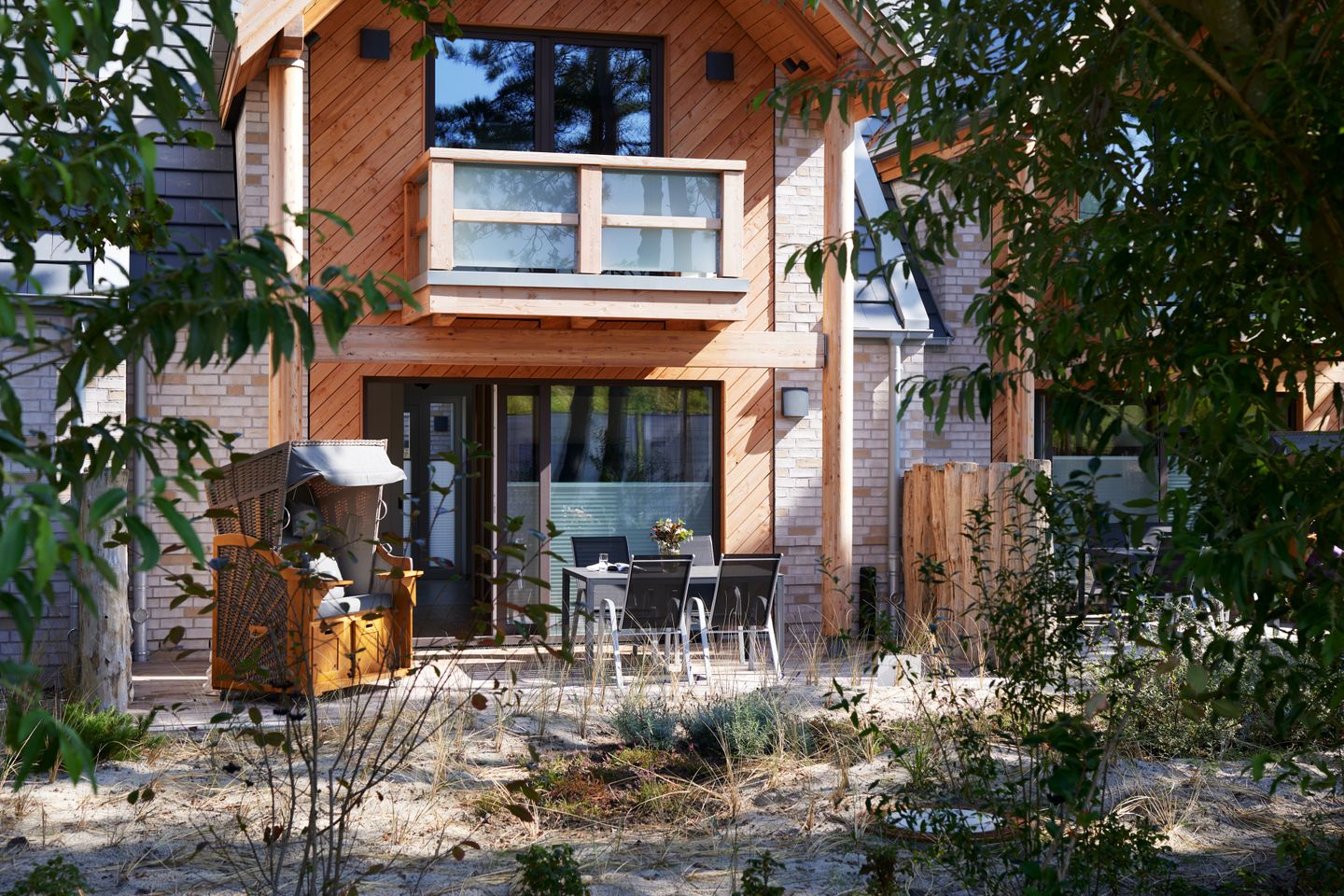 In einmalig schöner Strandlage begeistert das luxuriöse Ferienhaus mit drei Zimmern, Balkon, Terrasse, eigenem Saunabereich und erstklassigem Komfort auf drei Ebenen.