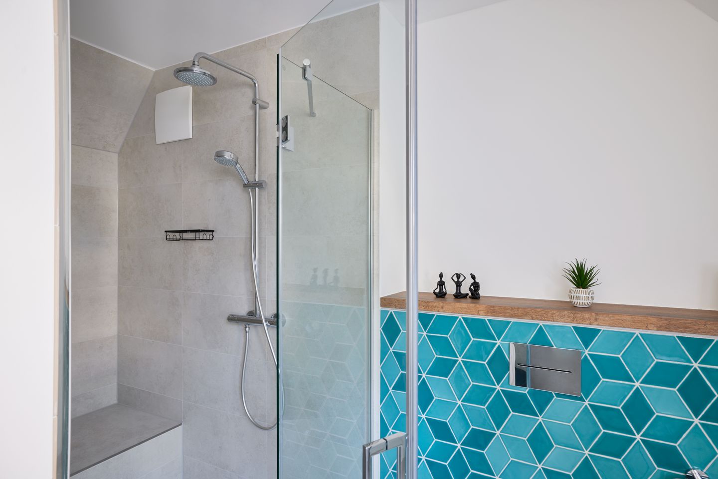 Der ca. 125 m² große Hausteil bietet alles, was Sie sich für eine erholsame Nordsee-Auszeit wünschen: im Erdgeschoss lädt der moderne Wohn- und Essbereich mit offener Küche und Design-Polstermöbeln zum entspannten Zusammensein ein. Die stilvolle Küche mit türkisfarbenen Fronten und goldenen Armaturen ist nicht nur optisch ein Hingucker, sondern auch umfassend ausgestattet. An den Wohnbereich schließt Sie Ihre große Sonnenterrasse mit Blick in die Sandlandschaft an. Zudem finden Sie im Erdgeschoss ein Gäste-WC.