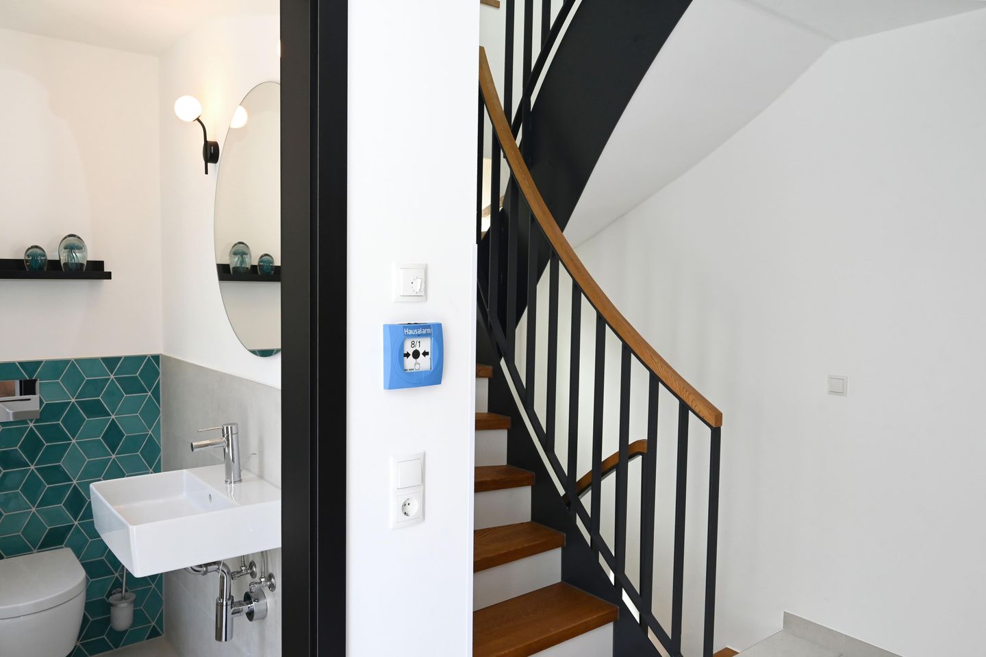 Im hellen Obergeschoss befindet sich ein großes Schlafzimmer mit komfortablen Doppelbett mit eigenem Balkon sowie ein geräumiges Badezimmer. Für erholsame Stunden sorgt Ihr privater Wellnessbereich mit Sauna und Bad im Untergeschoss. Es besteht eine weitere Schlafmöglichkeit für bis zu 2 Personen. In einem separaten Raum stehen zusätzlich eine Waschmaschine und ein Trockner zur Verfügung.