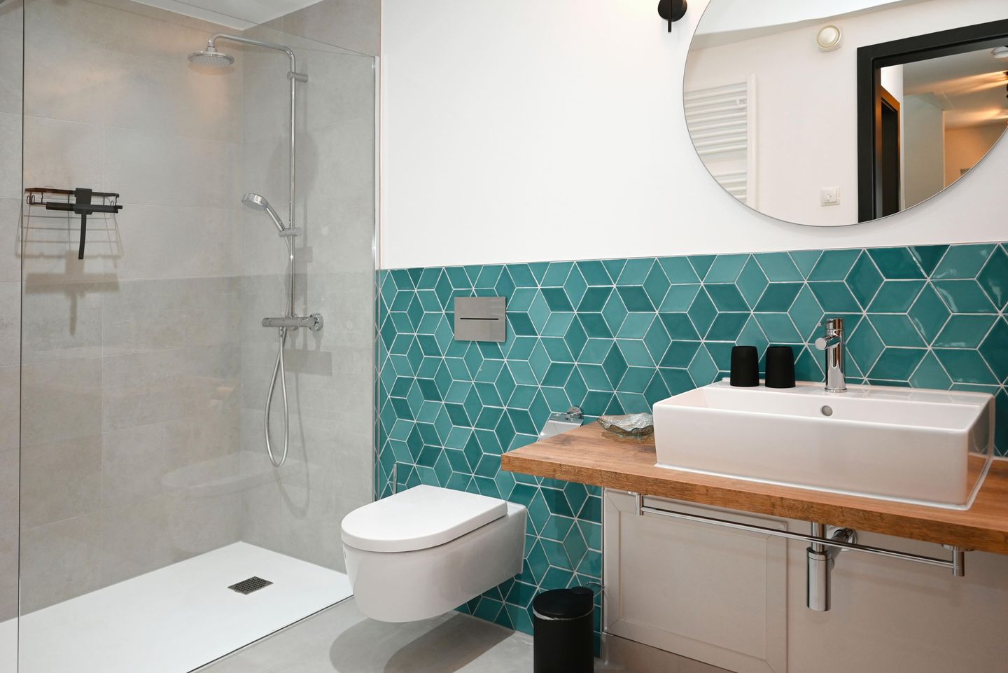 Der ca. 125 m² große Hausteil bietet alles, was Sie sich für eine erholsame Nordsee-Auszeit wünschen: im Erdgeschoss lädt der moderne Wohn- und Essbereich mit offener Küche und Design-Polstermöbeln zum entspannten Zusammensein ein. Die stilvolle Küche mit türkisenen Fronten und goldenen Armaturen ist nicht nur optisch ein Hingucker, sondern auch umfassend ausgestattet. An den Wohnbereich schließt Sie Ihre große Sonnenterrasse mit Blick in die Sandlandschaft an. Zudem finden Sie im Erdgeschoss ein Gäste-WC.